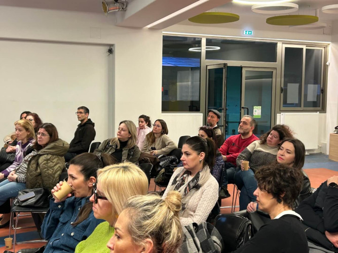 03 Μαρτίου 2026Την Τετάρτη 25 Φεβρουαρίου στο πλαίσιο των σεμιναρίων γονέων «Μεγαλώνοντας μαζί με τα παιδιά μας» πραγματοποιήθηκε η 5η απογευματινή συνάντηση γονέων με θέμα «Χαρτογραφώντας την προεφηβεία». Μιλήσαμε για τις αλλαγές, τις ανησυχίες, τα όρια και, κυρίως, για τον τρόπο που μπορούμε να στεκόμαστε δίπλα στα παιδιά μας με κατανόηση και ασφάλεια. Η συμμετοχή των γονέων ήταν συγκινητική. Οι ερωτήσεις, ο διάλογος και ο ενθουσιασμός στο τέλος της συνάντησης απέδειξαν πόσο σημαντικό είναι να μοιραζόμαστε γνώση και εμπειρίες. Ευχαριστούμε θερμά την εισηγήτρια ψυχολόγο, Μαρία Σγούρου, καθώς και όλους τους γονείς που ήταν μαζί μας. Συνεχίζουμε δυναμικά!