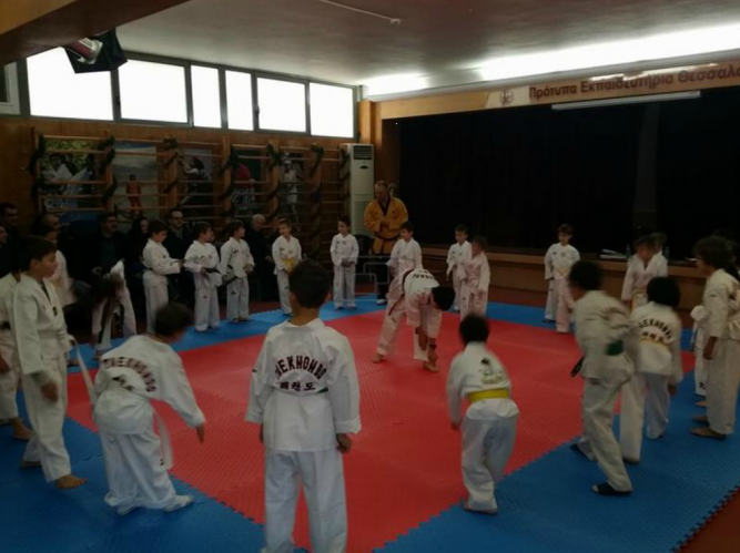 26 Νοεμβρίου 2017Την Κυριακή 26 Νοεμβρίου έγινε στο γυμναστήριο του Σχολείου μας προπόνηση των αθλητών του τμήματος του ΤΑΕ ΚWON DO. Η συμμετοχή ήταν μεγάλη και οι αθλητές καινούργιοι και παλιοί έδειξαν το πολύ καλό επίπεδο στο οποίο βρίσκονται. Στη συνέχεια έγινε ενημέρωση των γονέων για το πρόγραμμα της αγωνιστικής χρονιάς με τους αγώνες και τις εκδηλώσεις που θα γίνουν μέχρι το καλοκαίρι .Ιδιαίτερη έμφαση δόθηκε στους προσεχείς φιλικούς αγώνες που θα γίνουν 2 Δεκεμβρίου στο κλειστό γυμναστήριο της Πολίχνης και στους οποίους θα λάβουν μέρος αρκετοί αθλητές.
