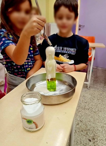 17 Οκτωβρίου 2022Ήρθε ο καιρός για πείραμα και δράση και για τα παιδιά μας της Β’ τάξης. Στο πλαίσιο των μαθημάτων της Γλώσσας, της Μελέτης Περιβάλλοντος και της θεματικής των Εργαστηρίων Δεξιοτήτων, στην οποία μελετάμε για «Το περιβάλλον και τις φυσικές καταστροφές» είδαμε πως «εκρήγνυται» ένα ηφαίστειο. Πρώτα παρακολουθήσαμε το πείραμα στον διαδραστικό πίνακα της τάξης μας κι ύστερα, γίναμε οι μικροί βοηθοί της κυρίας και…. Μπουμ!