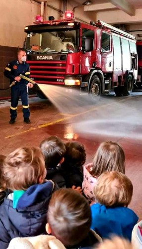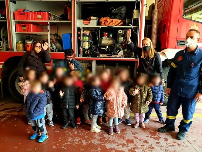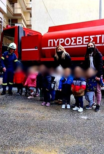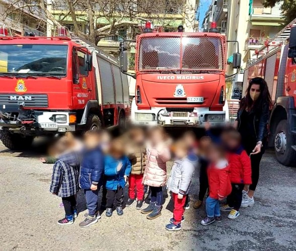23 Μαρτίου 2022Τα μικρά μας του Παιδικού Σταθμού «Πρότυπα 2-4» μας έκαναν την πρώτη τους εκδρομούλα στην Πυροσβεστική και περιηγήθηκαν με όλα τα μέτρα προστασίας στο 3o Πυροσβεστικό Σώμα Θεσσαλονίκης και τα οχήματά του. Είδαν τη στολή του πυροσβέστη, τον απαραίτητο εξοπλισμό που πρέπει να έχει και ξεναγήθηκαν στο εσωτερικό ενός πυροσβεστικού οχήματος. Άκουσαν για τους κινδύνους, αλλά και για τις χαρές του επαγγέλματος- λειτουργήματος, ενώ ενημερώθηκαν για τα μέτρα προστασίας σε περίπτωση φωτιάς. Η επίσκεψη των παιδιών μας πραγματοποιήθηκε στο πλαίσιο της θεματικής του σχολικού τους προγράμματος «Από τον ουρανό, στη θάλασσα και στη στεριά…με σήματα και φανάρια» στην οποία συζητούν για τα μέσα μεταφοράς.