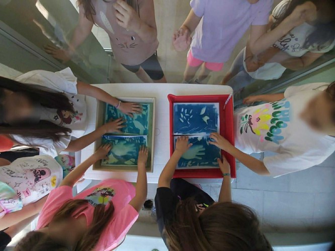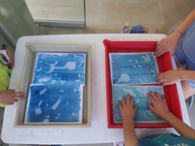 29 Ιουνίου 2023Τα παιδιά μας του English Summer School "Back to the Future" μυήθηκαν στην τέχνη της φωτογραφίας παρακολουθώντας ειδικά σεμινάρια. Μάλιστα, τα παιδιά μας "βούτηξαν" στο παρελθόν και με προσήλωση και ενδιαφέρον άκουσαν την λεπτομερή διαδικασία με την οποία πραγματοποιείται η μέθοδος της κυανοτυπίας. Οι μικροί μας κατασκηνωτές έμαθαν για μια από τις πρώτες φωτογραφικές τεχνικές, μάζεψαν φύλλα και αντικείμενα τα οποία χρησιμοποίησαν ως "μοντέλα" και με απόλυτο επαγγελματισμό εκτύπωσαν τις δικές τους φωτογραφίες με την διαδικασία της ηλιακής εκτύπωσης. Επιπλέον, η ημέρα αφιερωμένη στην τέχνη δεν τελείωσε εδώ! Οι εξερευνητές μας επισκέφθηκαν το MOMus - Μουσείο Σύγχρονης Τέχνης / Museum of Contemporary Art και ξεναγήθηκαν στον εκθεσιακό χώρο θαυμάζοντας τα εκθέματα και τις συλλογές.