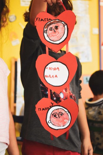 01 Οκτωβρίου 2020Την Πέμπτη 1 Οκτωβρίου καλωσορίσαμε τον δέκατο μήνα του χρόνου και γιορτάσαμε την Παγκόσμια Ημέρα Τρίτης Ηλικίας. Κουβεντιάσαμε για τον θεσμό της οικογένειας και για τη σπουδαία προσφορά της γιαγιάς και του παππού στη ζωή μας και ιδιαίτερα στα εγγονάκια τους. Τα παιδιά του Νηπιαγωγείου μας, επιθυμώντας να εκφράσουν την αγάπη τους, κατασκεύασαν ενθουσιασμένα μικρά μπρελόκ-καρδούλες από πηλό κι άλλα διακοσμητικά