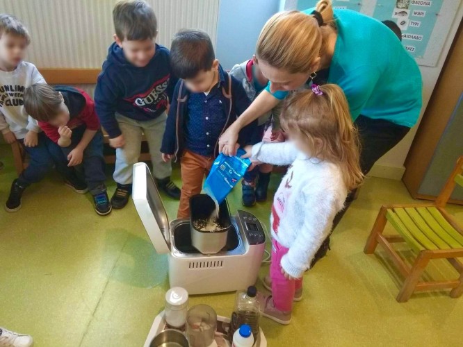 - Έφτιαξαν παρέα με τις νηπιαγωγούς μας το δικό τους φρέσκο ψωμάκι και, φυσικά, το απόλαυσαν αφού είχε πάρει την αφράτη μορφή που έπρεπε μετά το ψήσιμο.
