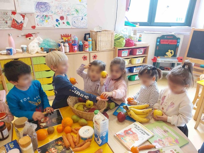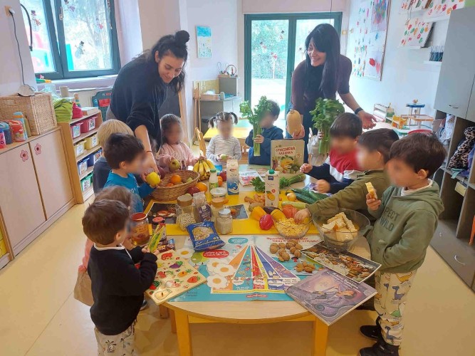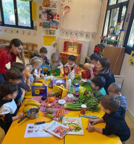08 Μαρτίου 2024Οι μικροί μαθητές του Παιδικού Σταθμού «Πρότυπα 2-4», στο πλαίσιο της θεματικής ενότητας «Σωστή διατροφή για να είμαστε γεροί!», έμαθαν για τη σημασία της υγιεινής διατροφής και τη συμβολή της στη διατήρηση της καλής υγείας. Τα μικρά μας παρατήρησαν και σχολίασαν πίνακες ζωγραφικής με θέμα τη διατροφή, ενώ στη συνέχεια, μύρισαν και δοκίμασαν φρούτα και λαχανικά και έμαθαν τις ομάδες τροφίμων, όπως τα δημητριακά, οι πρωτεΐνες και τα γαλακτοκομικά. Τέλος, δημιούργησαν πρωτότυπες ζωγραφιές με μόνο υλικό το αλεύρι!