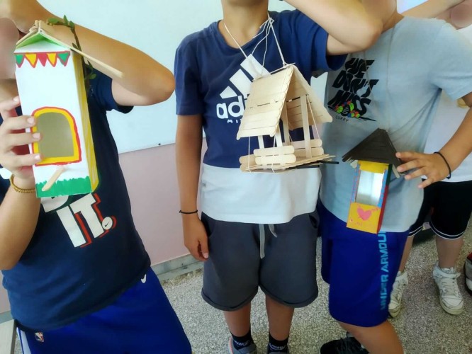 11 Ιουνίου 2023Τα παιδιά μας της Δ' τάξης με μεράκι και αγάπη κατασκεύασαν σπιτάκια και ταΐστρες, αξιοποιώντας διαφορά υλικά, για τους φτερωτούς τους φίλους. Στόλισαν τα δέντρα που βρίσκονται στην αυλή του Σχολείου μας και προσέφεραν ένα σπίτι για τα πουλάκια του ουρανού που κελαηδούν και κάνουν την μέρα μας πιο όμορφη. Όλα αυτά πραγματοποιήθηκαν στα πλαίσια των εργαστηρίων δεξιοτήτων πάνω στην ενότητα "Η ζωή μέσα από τα μάτια των αδέσποτων ζώων". Μέσα από αυτή την δράση οι μαθητές μας μαθαίνουν να αγαπούν, να προστατεύουν και κυρίως να σέβονται τα ζώα.