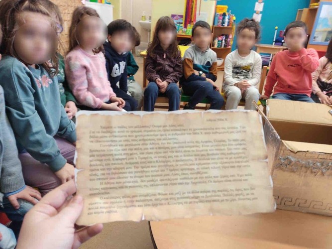 12 Μαρτίου 2024Μια χρονοκάψουλα βγαλμένη από το παρελθόν ανακάλυψαν τα νηπιάκια μας στην αυλή του Σχολείου μας και με τη βοήθειά της έκαναν μια βουτιά στην ιστορία την Τετάρτη 14 Φεβρουαρίου! Το ταξίδι στην αρχαία Ελλάδα ξεκίνησε και τα παιδιά μας γνώρισαν πώς ζούσαν οι άνθρωποι εκείνη την εποχή. Έμαθαν για τη διατροφή τους, την ενδυμασία τους και τα παιχνίδια τους και ήρθαν σε επαφή με τη γλυπτική και την αρχιτεκτονική του αρχαίου πολιτισμού μας. Παρατήρησαν τα εκθέματα και εντυπωσιάστηκαν από τις μορφές και τη μοναδικότητά τους κατά την επίσκεψή τους στο Αρχαιολογικό Μουσείο της πόλης μας. Τέλος, έγιναν μικροί καλλιτέχνες και κατασκεύασαν με πηλό τους δικούς τους αμφορείς, ολοκληρώνοντας την αναδρομή τους στην αρχαιότητα με τον πιο δημιουργικό τρόπο.