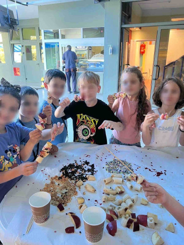 25 Ιουνίου 2025Στο English Summer Camp συνεχίζουμε να ζούμε ημέρες γεμάτες ενέργεια, δημιουργία και διασκέδαση! Τα παιδιά μας είχαν την έμπνευση να φτιάξουν δικές τους πίτσες από χαρτί διαλέγοντας τα toppings που θα τη συνοδεύσουν. Στη συνέχεια, απόλαυσαν τα δροσερά φρουτένια… σουβλάκια. Στην καταπράσινη αυλή μας έπαιξαν το απαιτητικό επιτραπέζιο Jenga ξεπερνώντας τις προκλήσεις. Στη ρομποτική τα παιδιά κατασκεύασαν «έργα τέχνης» εμπνευσμένες από την Ιαπωνία, ενώ τραγούδησαν και το “Head, Shoulders, Knees and Toes”… στα ιαπωνικά! Ακόμα, έπαιξαν σκάκι, έκαναν βουτιές στην πισίνα και έβαλαν «κομμάτι του ωκεανού» σε ένα μικρό μπουκαλάκι. Τι άλλο θα γίνει;