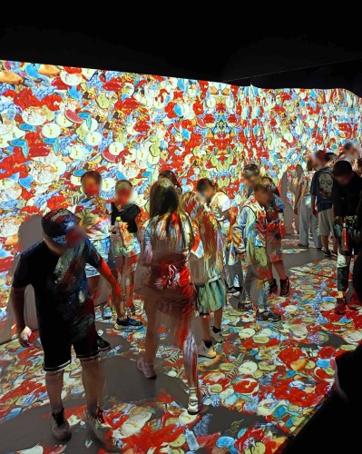 24 Μαΐου 2024Οι μαθητές μας των Β΄ και Ε΄ τάξεων έκαναν το δικό τους ταξίδι με το «Πλοίο των ονείρων» στην έκθεση Dali Cybernetics-The Immersive Experience» που αυτό το διάστημα παρουσιάζεται στην Αποθήκη Γ΄ στο Λιμάνι της Θεσσαλονίκης. Τα παιδιά μας απόλαυσαν μία μοναδική εμπειρία εικονικής πραγματικότητας (VR 360), αφού η έκθεση είναι στημένη με αυτή η φιλοσοφία. Έτσι, έμαθαν για τη ζωή, το έργο και τους σταθμούς της καριέρας του ζωγράφου. Εμπνευσμένα από τους πίνακες του καλλιτέχνη ζωγράφισαν τα αγαπημένα τους μοτίβα, όπως η «Γαλατεία των Σφαιρών». Επίσης, γνώρισαν την καθημερινότητα του Dali παρακολουθώντας το ντοκιμαντέρ του Jack Bond. Η πιο συναρπαστική στιγμή ήταν όταν κάθισαν στον γνωστό αυθεντικό καναπέ DaliLips όπου έβγαλαν αναμνηστικές φωτογραφίες σε ένα ειδικά διαμορφωμένο photobooth.