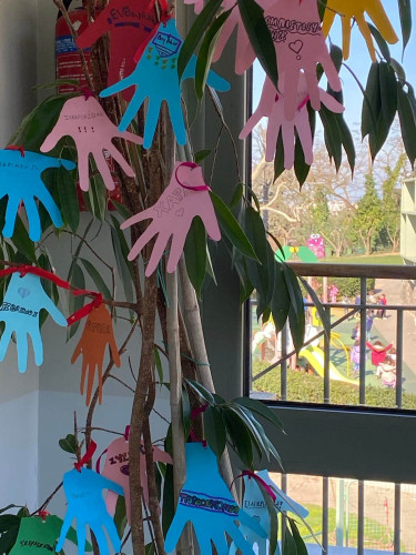 06 Μαρτίου 2026Με αφορμή την Πανελλήνια Ημέρα κατά της Σχολικής Βίας, οι μαθητές της Ε΄ τάξης συμμετείχαν σε μια δημιουργική δράση με στόχο την ευαισθητοποίηση και την ενίσχυση της ενσυναίσθησης. Τα παιδιά κατασκεύασαν με χαρτόνι τις δικές τους παλάμες, τις διακόσμησαν και έγραψαν πάνω τους δυνατά μηνύματα κατά του εκφοβισμού. Με ξεχωριστό τρόπο μας υπενθύμισαν ότι κανένας δεν είναι μόνο γιατί κάθε πρόβλημα μπορεί να μοιραστεί και να αντιμετωπιστεί συλλογικά. Αυτό που χρειάζεται είναι συνεργασία, σεβασμός και αλληλεγγύη ώστε να έχουμε ένα Σχολείο ασφαλές, όπου κάθε παιδί νιώθει αποδοχή και στήριξη.