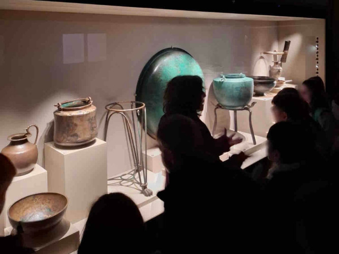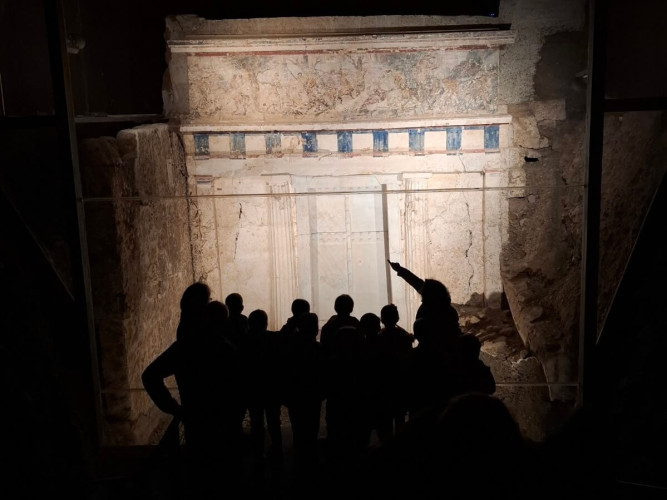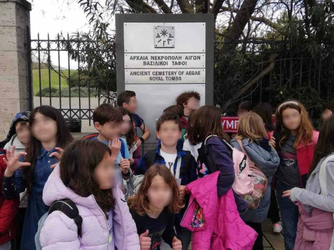 28 Μαρτίου 2025Για την Μακεδονία και την ιστορία της που είναι γεμάτη με μύθους και αμύθητους θησαυρούς «κρυμμένους» στα άδυτα της γης έμαθαν οι μαθητές μας της Δ΄ τάξης κατά τη διάρκεια της επίσκεψής τους στον αρχαιολογικό χώρο της Βεργίνας. Στο πλαίσιο της ενότητας «Η Μακεδονία, μια νέα ελληνική δύναμη» του μαθήματος «Ιστορία-Στα αρχαία χρόνια» και διαθεματικά με το εργαστήριο δεξιοτήτων της ενότητας «Υπέδαφος» τα παιδιά ξεναγήθηκαν στους βασιλικούς τάφους και περιπλανήθηκαν στο μουσείο θαυμάζοντας τα εντυπωσιακά εκθέματα. Ακόμα, πληροφορήθηκαν για την επιστήμη των αρχαιολόγων και επιστρέφοντας στο Σχολείο αφού μελέτησαν οπτικοακουστικό υλικό συμπλήρωσαν φύλλα εργασίας με τις γνώσεις που αποκόμισαν.