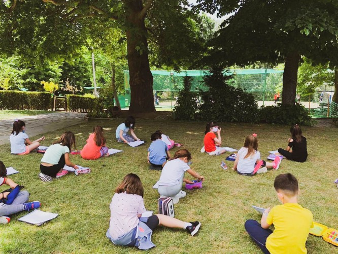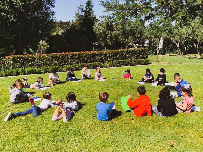 27 Μαΐου 2021Έξω στην αυλή του σχολείου μας το μάθημά μας αλλάζει μορφή! Η έμπνευσή μας τροφοδοτείται από τους ήχους και τις εικόνες της φύσης. Τα πρωτάκια μας καθισμένα στο καταπράσινο γρασίδι την Πέμπτη 27 Μαΐου ζωγράφισαν το καλοκαίρι με χρώματα και μαρκαδόρους!