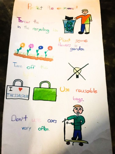 31 Μαρτίου 2020Οι μαθητές της Δ’ τάξης με την καθοδήγηση των εκπαιδευτικών μας, στο πλαίσιο του μαθήματος των Αγγλικών, προσέγγισαν με ευαισθησία σοβαρά περιβαλλοντικά ζητήματα κι έφτιαξαν πολύχρωμες αφίσες με απλές καθημερινές λύσεις και πρακτικές συμβουλές. Γονείς και παιδιά διαμορφώνουν στάσεις και αξίες ζωής. Όλοι μαζί… «𝐰𝐞 𝐩𝐫𝐨𝐭𝐞𝐜𝐭 𝐭𝐡𝐞 𝐞𝐧𝐯𝐢𝐫𝐨𝐧𝐦𝐞𝐧𝐭»! Σας ευχαριστούμε!