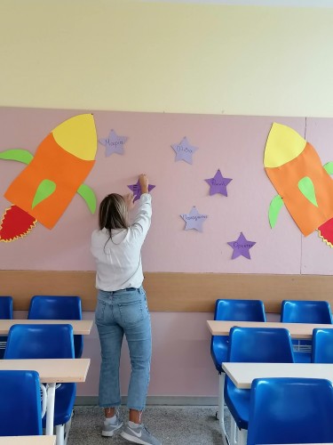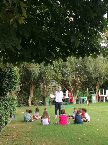 08 Σεπτεμβρίου 2021«ΝΙ-ΚΟ-ΛΑΣ», «ΔΑ-ΝΑ-Η», είπαν ρυθμικά τα παιδιά μας! Η Τετάρτη 8 Σεπτεμβρίου ξεκίνησε για τους μαθητές της Α΄ τάξης με παιχνίδια γνωριμίας και ετοιμότητας, αφού με τη δασκάλα της μουσικής βγήκαν στην αυλή του Σχολείου μας και άρχισαν να συστήνονται με τραγούδι και χορό. Όμως και τα παιδιά του νηπιαγωγείου βγήκαν στην αυλή και καλωσόρισαν το φθινόπωρο μαζεύοντας φύλλα από την παιδική χαρά και πετώντας τα ψηλά. Τα παιχνίδια γνωριμίας και ετοιμότητας δεν έλειψαν ούτε σήμερα από το εκπαιδευτικό μας πρόγραμμα.