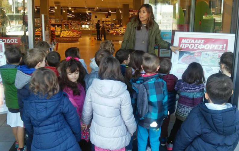 Αρχικά οι μαθητές μας παρατήρησαν τον εξωτερικό χώρο ( πάρκινγκ, θέσεις αναπήρων, εισόδους λιανικής-χοντρικής πώλησης, ΑΤΜ, ταμπέλες) και στη συνέχεια ξεναγήθηκαν στα διάφορα τμήματα (κρεοπωλείο, τυροκομικά, τμήμα φρούτων, απορρυπαντικών, τμήμα κατεψυγμένων κλπ), περπάτησαν στους διαδρόμους, παρατήρησαν τα προϊόντα και συζήτησαν για την ποιότητα και την προέλευση των προϊόντων (ελληνικά- εισαγόμενα) αλλά και για την σωστή συμπεριφορά μας μέσα και έξω από αυτούς τους χώρους.