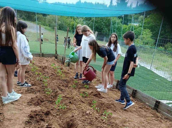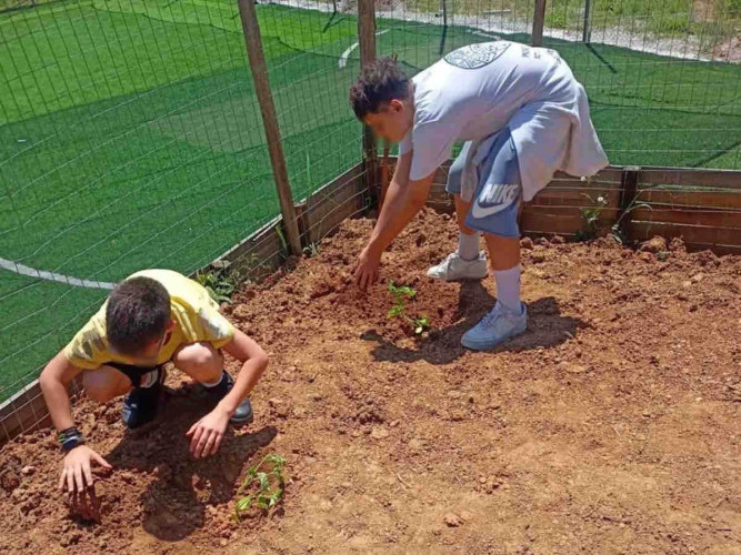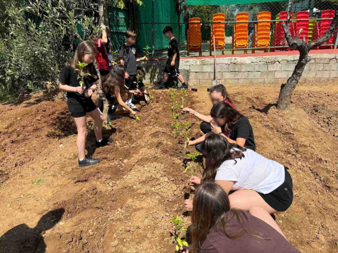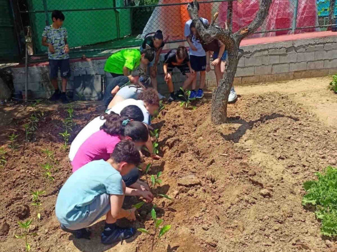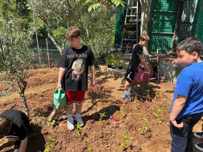 27 Μαΐου 2025Στο πλαίσιο των Εργαστηρίων Δεξιοτήτων της θεματικής ενότητας «Άνθρωπος και Περιβάλλον», οι μαθητές της Στ΄ τάξης φύτεψαν με τα χεράκια τους στον λαχανόκηπό μας ντομάτες, πιπεριές και άλλα λαχανικά εποχής. Μέσα από τη βιωματική αυτή δράση τα παιδιά εξασκήθηκαν σε βασικές τεχνικές κηπουρικής, καλλιέργησαν οικολογική συνείδηση και έμαθαν με ποιον τρόπο μπορούμε να συμβάλουμε ενεργά στη διαχείριση των φυσικών πόρων του Σχολείου μας.