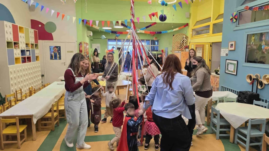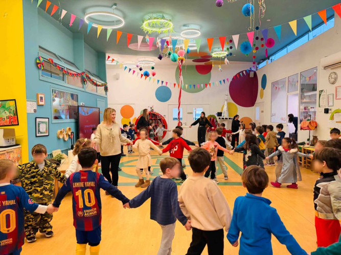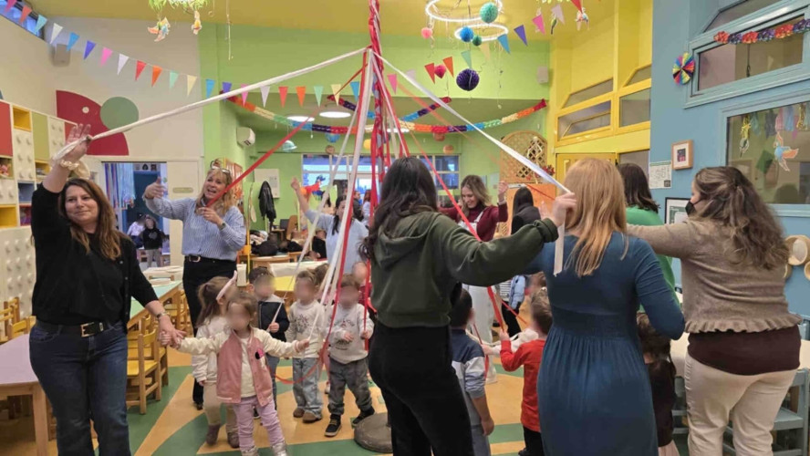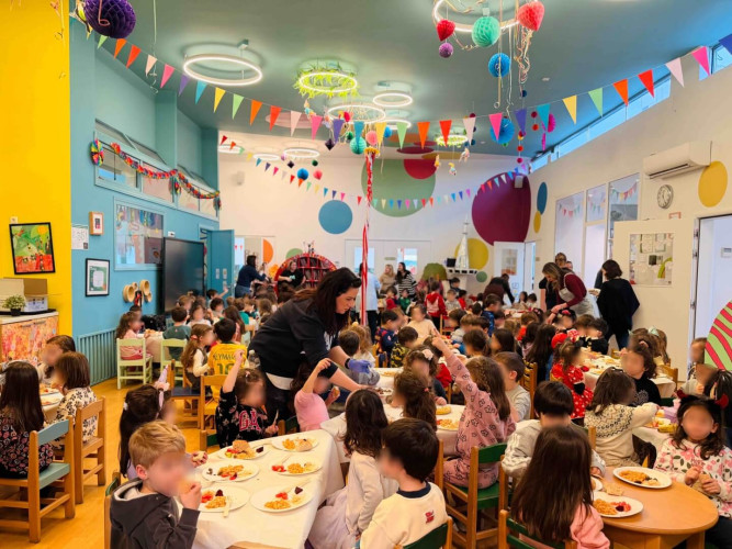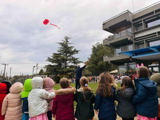 20 Φεβρουαρίου 2026Το τραπέζι στρώθηκε, τα σαρακοστιανά εδέσματα ετοιμάστηκαν και οι μαθητές μας του Νηπιαγωγείου προσκάλεσαν τα μικρά μας του Παιδικού Σταθμού για να γιορτάσουν μαζί τα Κούλουμα. Η Καθαρά Δευτέρα σηματοδοτεί την αρχή της Σαρακοστής και στο Σχολείο μας κρατώντας ζωντανές τις παραδόσεις τηρήσαμε τα έθιμα της ημέρας. Λαγάνα, ελιές, ταραμάς, χαλβάς, φάβα και φυσικά η κλασική φασολάδα ήταν τα πεντανόστιμα φαγητά που απόλαυσαν τα παιδιά. Χόρεψαν ακολουθώντας το ρυθμό της μουσικής και όταν ήρθε η ώρα έμπλεξαν και ξέμπλεξαν το «γαϊτανάκι». Η πιο συναρπαστική στιγμή όμως ήταν όταν μαζευτήκαμε όλοι μαζί για το πέταγμα του χαρταετού. Με λίγη προσπάθεια και πολύ ενθουσιασμό καταφέραμε να τον δούμε να ανεβαίνει ψηλά στον ουρανό.