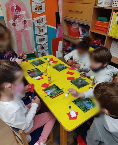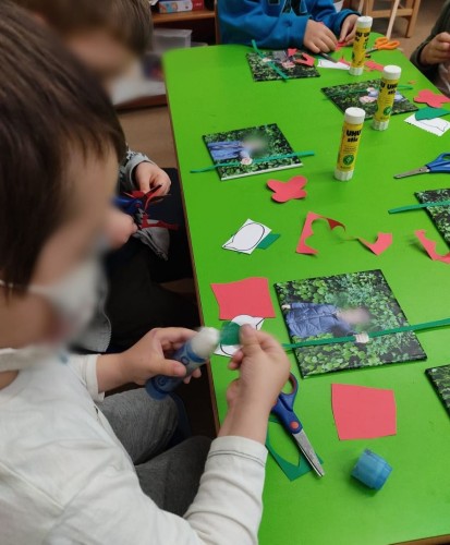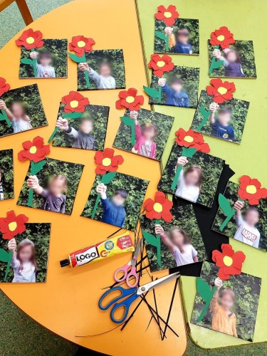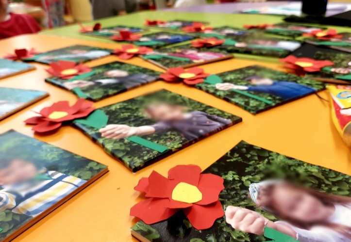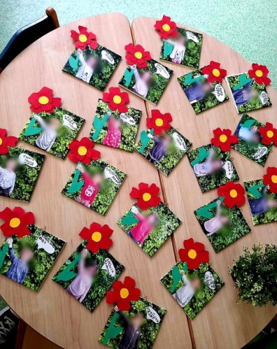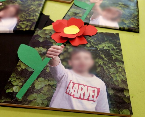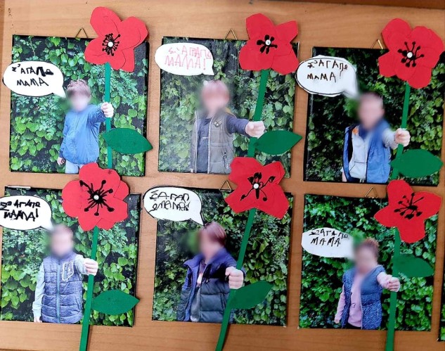 - Δημιούργησαν με πολλή αγάπη μία κορνίζα με τη φωτογραφία τους και ένα λουλουδάκι το οποίο της προσφέρουν.