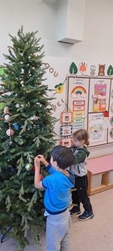 08 Δεκεμβρίου 2023Από τη Δευτέρα 27 Νοεμβρίου έως την Παρασκευή 1 Δεκεμβρίου τα μικρά μας του Παιδικού Σταθμού «Πρότυπα 2-4» μαζί με την παιδαγωγό τους καλωσόρισαν τα Χριστούγεννα στολίζοντας ένα υπέροχο χριστουγεννιάτικο δέντρο. Λαμπάκια, πολύχρωμες μπάλες και ιδιαίτερα στολίδια βγήκαν από τις κούτες τους και το πνεύμα των Χριστουγέννων μπήκε στο Σχολείο μας, ενώ τα παιδιά μας με τα χεράκια τους έδωσαν τη δική τους προσωπική πινελιά χρωματίζοντας ξύλινα διακοσμητικά δεντράκια, τα οποία παρουσίασαν την Κυριακή 3 Δεκεμβρίου στο 28ο Bazaar του Σχολείου μας.