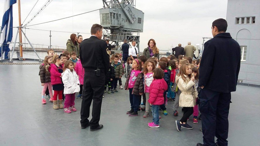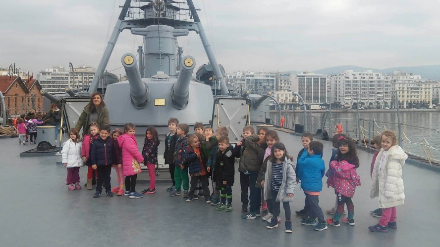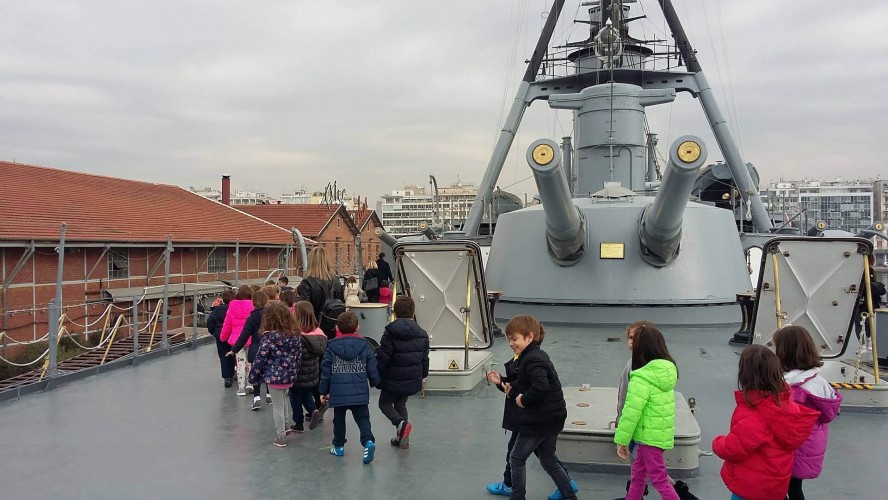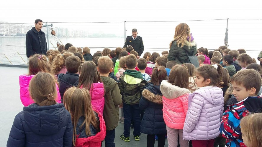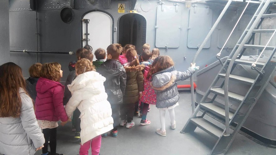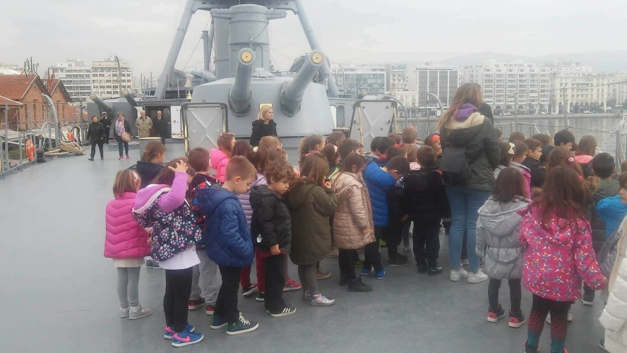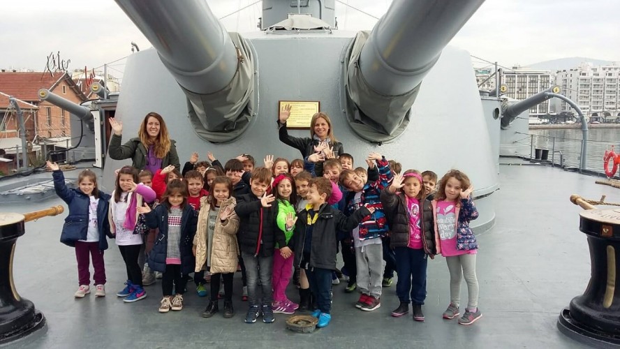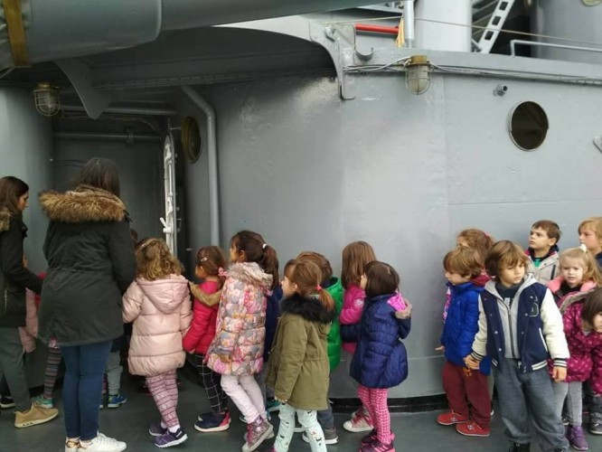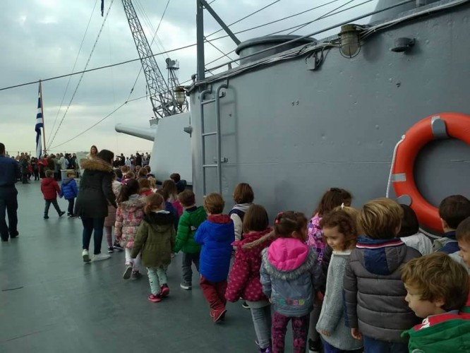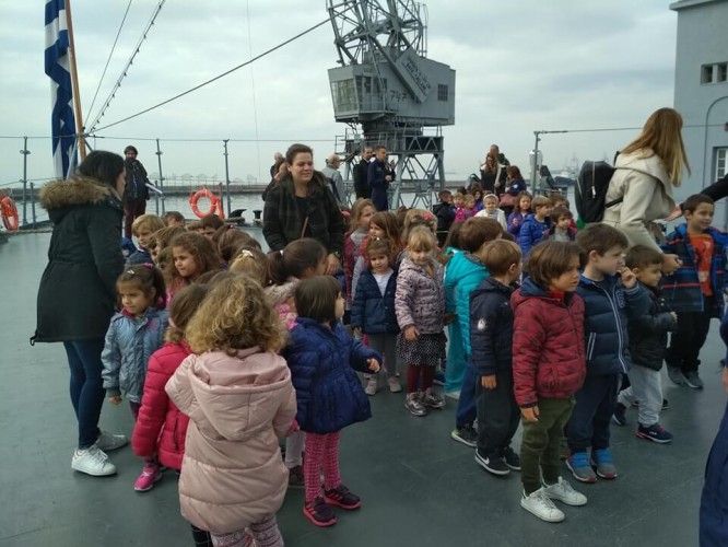 Με τα ματάκια τους γεμάτα θαυμασμό και χιλιάδες απορίες ξεναγήθηκαν σε όλους τους χώρους του πλοίου εσωτερικούς και εξωτερικούς, άκουσαν με πολύ μεγάλη προσοχή τους αξιωματικούς και έμαθαν να χαιρετάνε σαν... άψογα ναυτάκια. Με τις καρδιές τους γεμάτες από το μεγαλείο της ελληνικής ιστορίας, επέστρεψαν στο σχολείο!