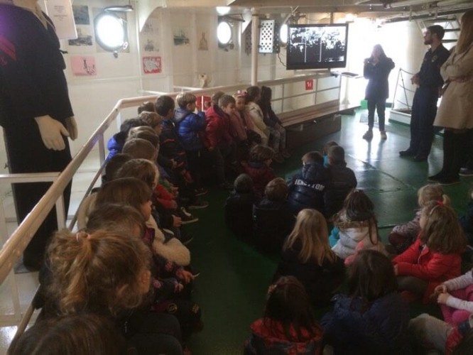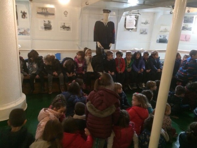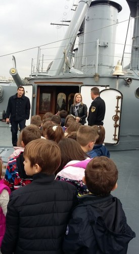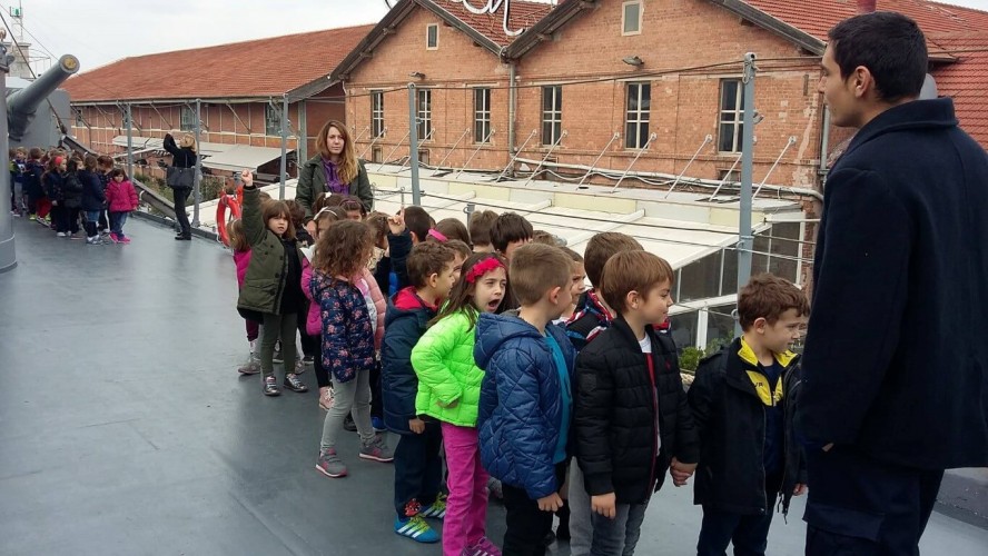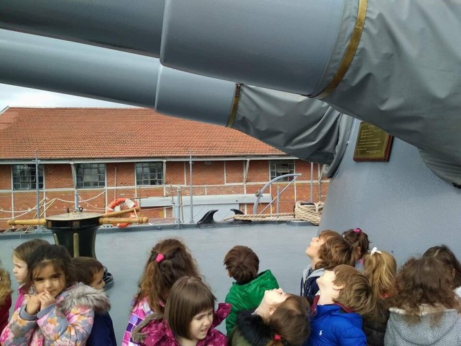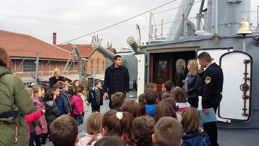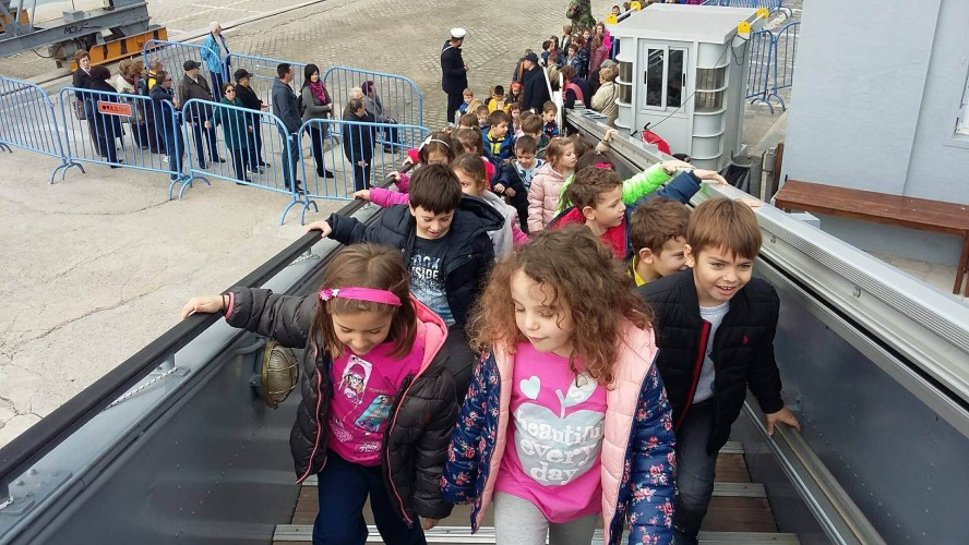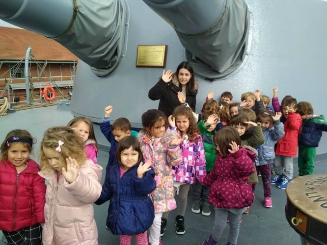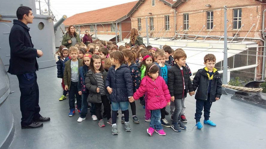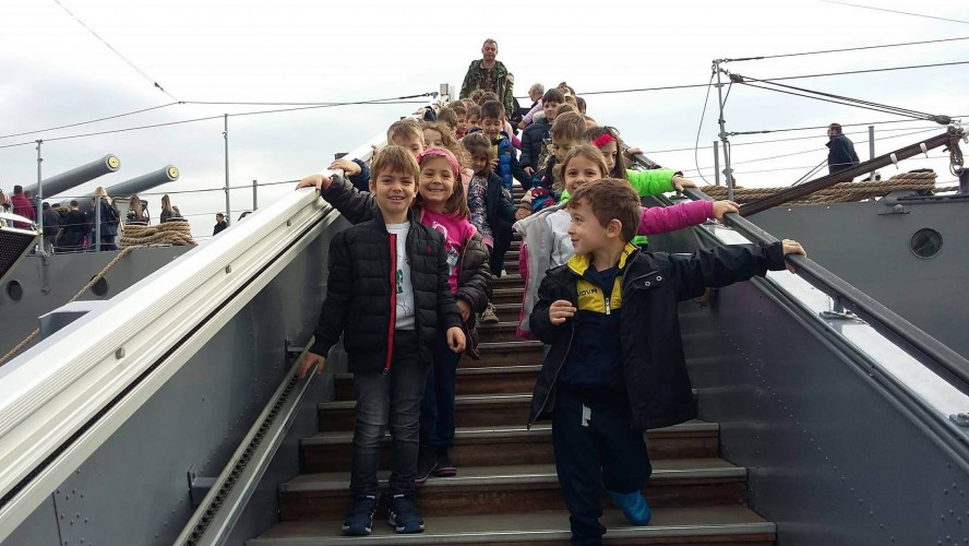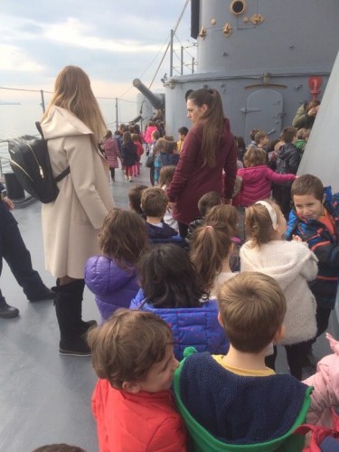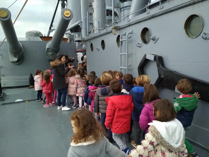 Με τα ματάκια τους γεμάτα θαυμασμό και χιλιάδες απορίες ξεναγήθηκαν σε όλους τους χώρους του πλοίου εσωτερικούς και εξωτερικούς, άκουσαν με πολύ μεγάλη προσοχή τους αξιωματικούς και έμαθαν να χαιρετάνε σαν... άψογα ναυτάκια. Με τις καρδιές τους γεμάτες από το μεγαλείο της ελληνικής ιστορίας, επέστρεψαν στο σχολείο!
