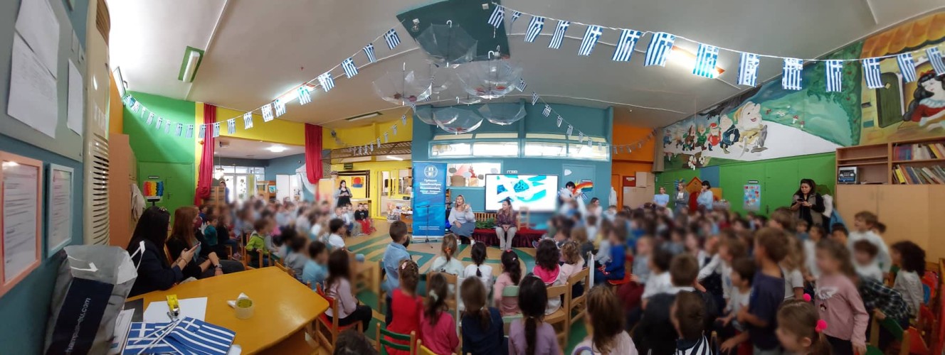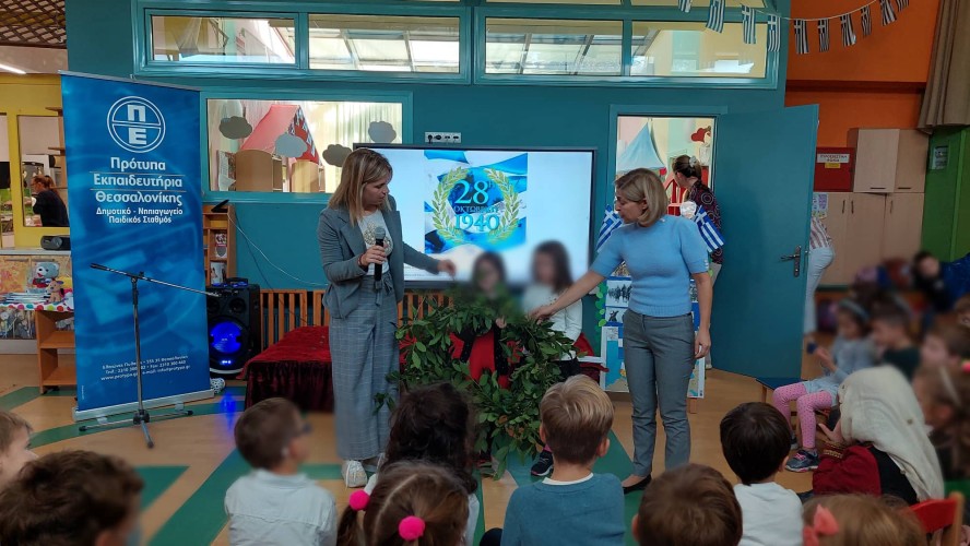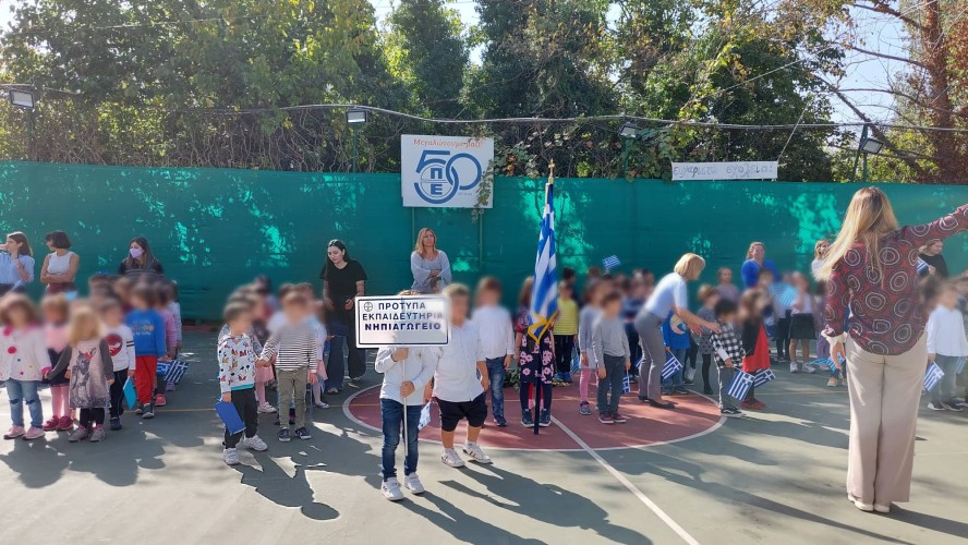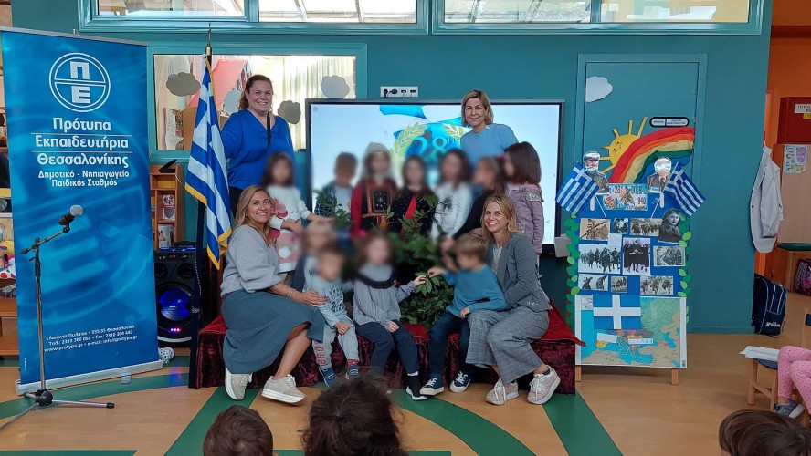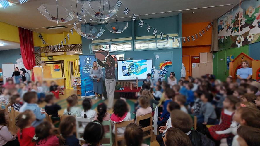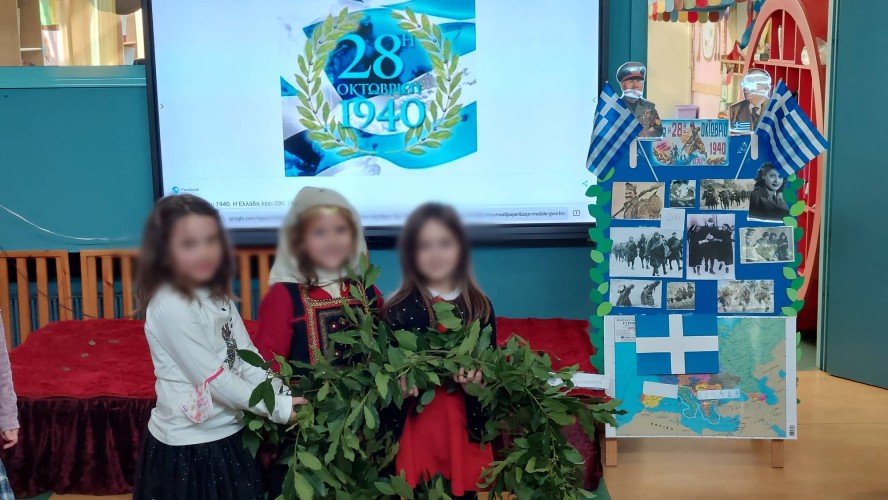 27 Οκτωβρίου 2022Τα νήπιά μας γιόρτασαν και εκείνα την εθνική επέτειο της 28ης Οκτωβρίου και τη μνήμη των αγωνιστών παρακολουθώντας και αυτά τη δραματοποίηση των νηπιαγωγών με θέμα «την Ειρήνη και τον πόλεμο» στη σάλα του Νηπιαγωγείου μας.
