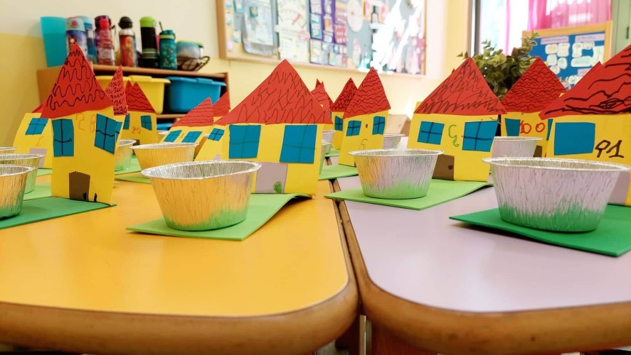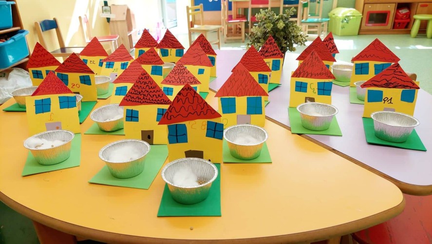 - Κατασκεύασαν σπιτάκια κολλάζ με κήπο στον οποίο φύτεψαν φακές και τον περιποιούνται καθημερινά
