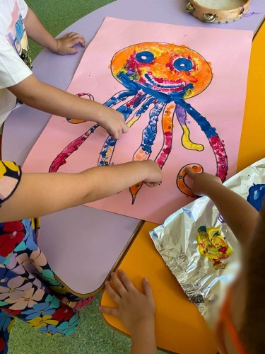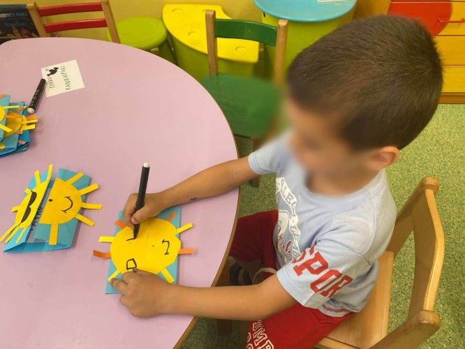 06 Ιουλίου 2022Το καλοκαίρι είναι θάλασσα, ήλιος, χαρά και φυσικά ανεμελιά! Μπορεί να μην έχουμε θάλασσα ακριβώς, αλλά δεν πτοηθήκαμε... Φέραμε θαλασσινό αέρα στις τάξεις μας δημιουργώντας όλοι μαζί ένα χταπόδι! Όσο το φτιάχναμε συζητούσαμε με τις κυρίες μας για τον θαλάσσιο κόσμο, και φυσικά, μοιραστήκαμε εμπειρίες από αγαπημένους προορισμούς. Τον ήλιο τον έχουμε άφθονο, αλλά είπαμε να τον κατασκευάσουμε κι αυτόν. Έτσι, κάναμε τη δική μας φωτεινή κάρτα εικονίζοντάς τον. Του βάλαμε και γυαλιά, γιατί πρέπει να προσέχουμε τα μάτια μας. Το πρόβλημα ήταν η χαρά και η ανεμελιά. Εκείνες, τις έχουμε κάθε μέρα στο Σχολείο μας. Δεν θέλαμε και πολύ, η αυλή. Αυτή είναι το καλύτερο μέρος για τρέξιμο και παιχνίδι. Είναι και καταπράσινη και έχει και αρκετά μέρη με σκιά . Οι νηπιαγωγοί μας έφεραν κανάτες και παίξαμε κινητικά παιχνίδια προσπαθώντας να τις γεμίσουμε με τι άλλο; Νερό! Μα, τι όμορφο που είναι το καλοκαίρι!