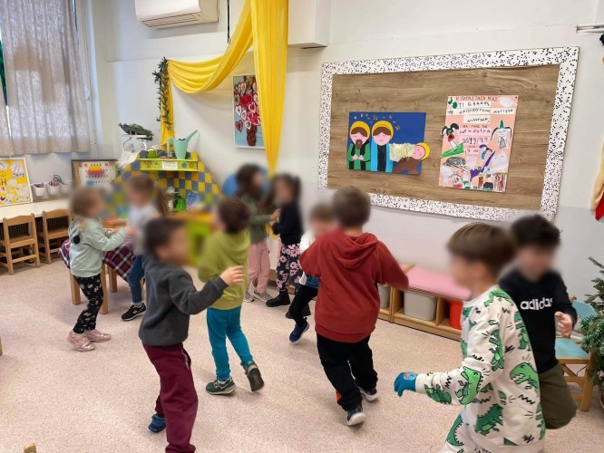 - Έπαιξαν κινητικά παιχνίδια στη σάλα και στην αυλή ακούγοντας εορταστική μουσική