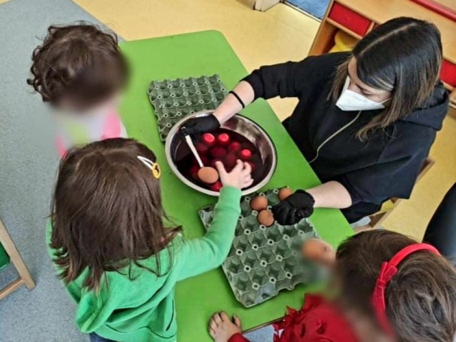 Τα προνηπιάκια μας βάφουν αυγουλάκια!