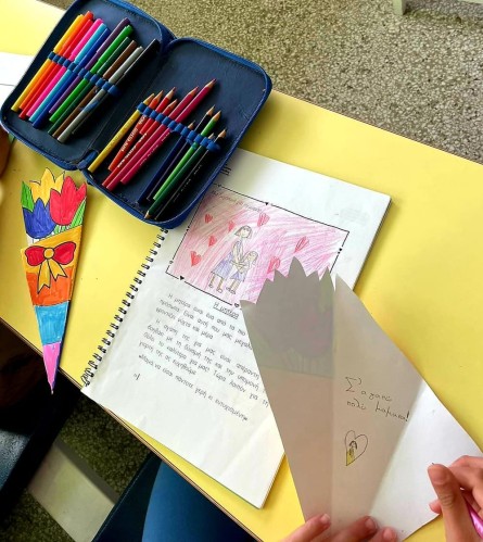 08 Μαΐου 2022Τα παιδιά μας της Α’ Τάξης γιόρτασαν τη μαμά τους στο Σχολείο μας δημιουργώντας πολύχρωμα μπουκετάκια λουλουδιών για να της τα προσφέρουν!