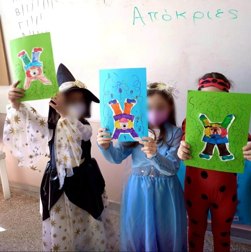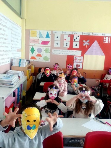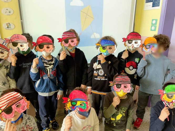 04 Μαρτίου 2022Τα παιδιά μας της Α’ Τάξης γιορτάζουν τις Απόκριες φορώντας τις στολές τους και διασκεδάζοντας στις τάξεις τους. Επίσης, δημιούργησαν τις δικές τους αποκριάτικες μάσκες και χαρταετό, ενώ έκαναν και κατασκευές με αρλεκίνους!