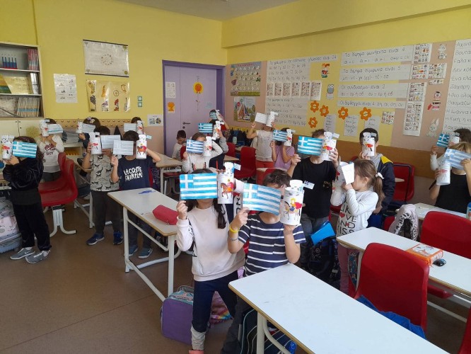 - Χειροτέχνησαν ελληνικές σημαιούλες, τις οποίες κυμάτισαν ακούγοντας αγωνιστικά τραγούδια
