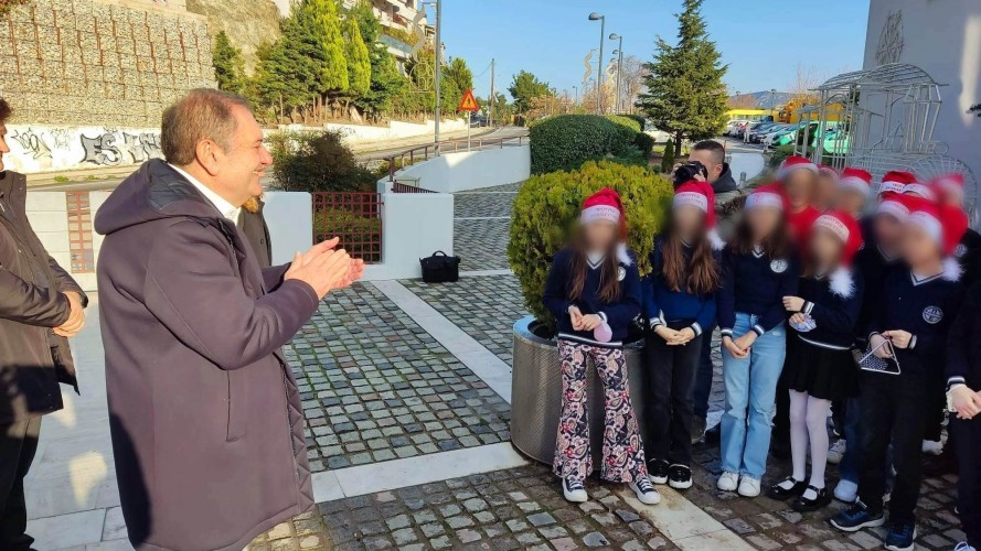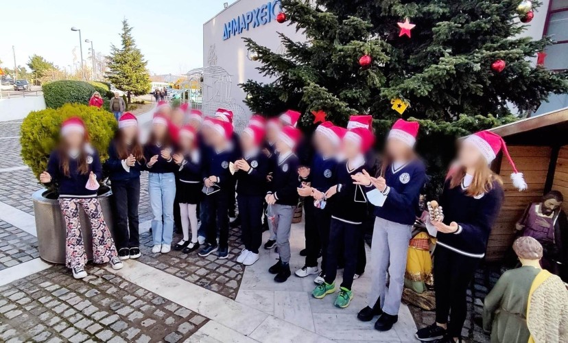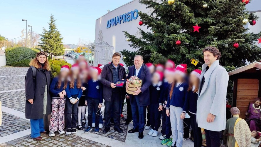 20 Δεκεμβρίου 2022Τα παιδιά μας με την καθηγήτρια μουσικής και τον διευθυντή του Σχολείου μας επισκέφθηκαν, όπως είθισται κάθε χρόνο, το δημαρχείο Πυλαίας – Χορτιάτη για να ευχηθούν Χρόνια Πολλά στον δήμαρχό μας Ιγνάτιο Καϊτετζίδη που έχει την ονομαστική του εορτή. Του έδωσαν το δώρο του και παράλληλα του έψαλλαν τα παραδοσιακά κάλαντα της Ικαρίας, που είναι από τα αγαπημένα του. Εκείνος τα ευχαρίστησε, ενώ στο τέλος οι συνεργάτες του πρόσφεραν σε όλα χριστουγεννιάτικες λιχουδιές.