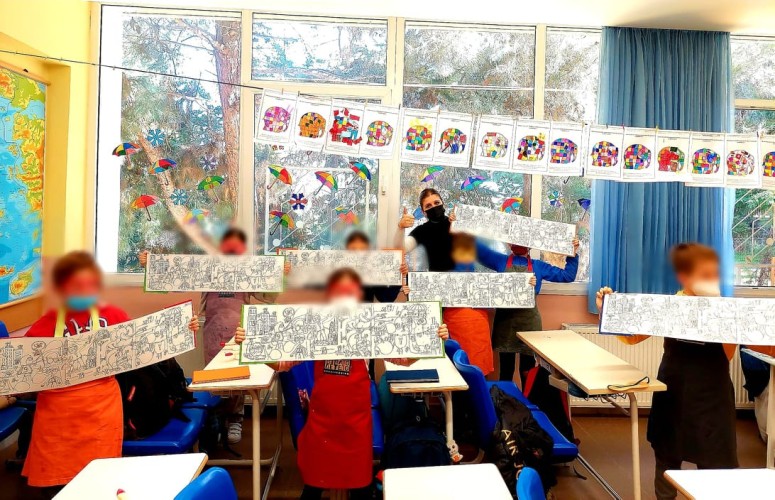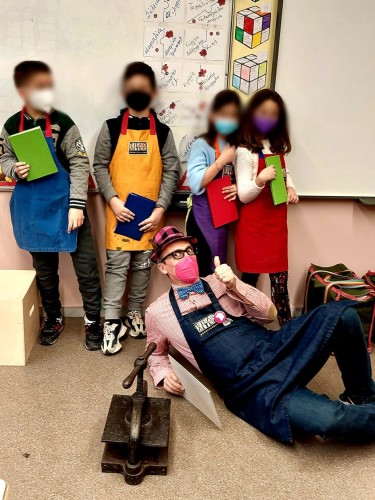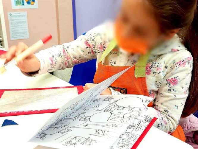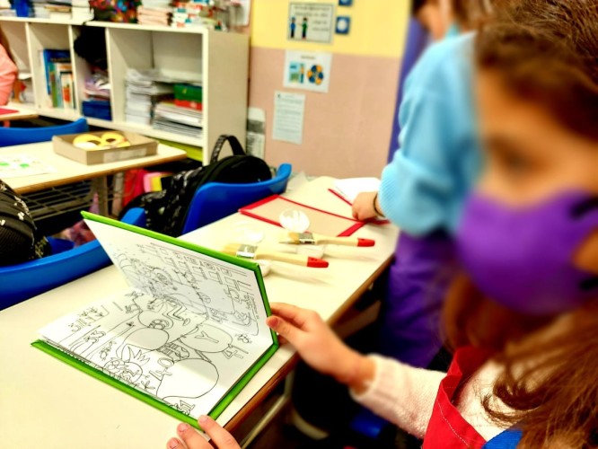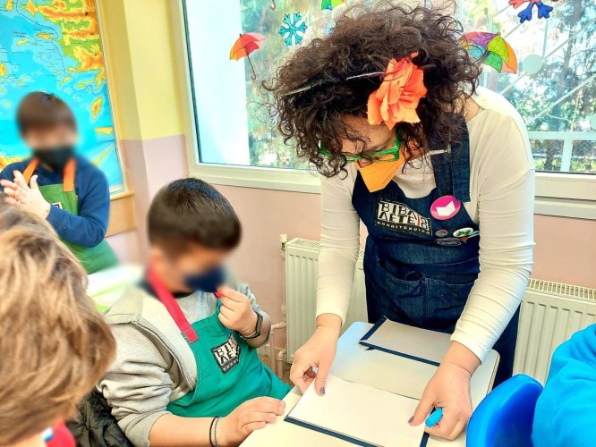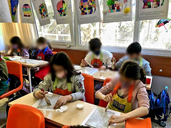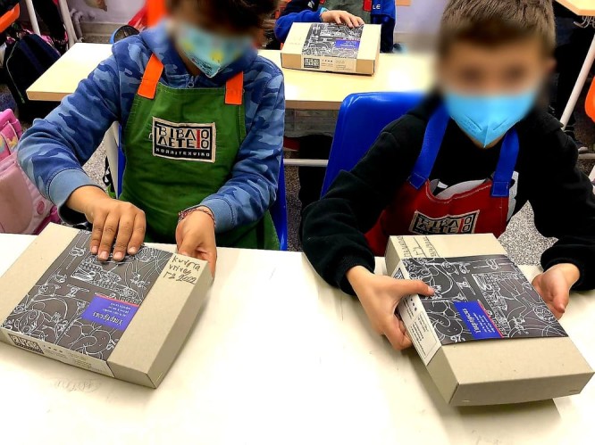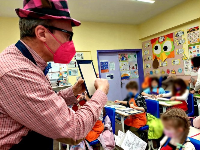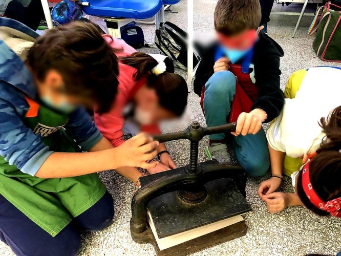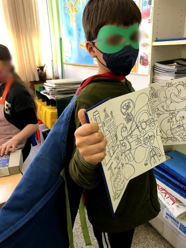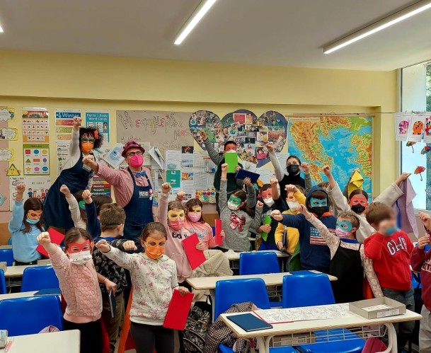 μυήθηκαν τα παιδιά μας της Γ’ Τάξης από την Τέλα και τον Σπάγκο. Τους υπέροχους γάτους από το ΒΙΒΛΙΟΔΕΤΕΙΟ, οι οποίοι πέραν από το ότι μας έδειξαν βήμα βήμα πώς φτιάχνεται ένα βιβλίο, έκαναν συνέχεια αστεία και πειράγματα. Πήραμε τα υλικά, βάλαμε τις ποδιές και αρχίσαμε το μαγικό ταξίδι. Κόλλα, πινέλα, χαρτιά, η πρέσα της βιβλιοδεσίας και αγάπη… Αγάπη για το βιβλίο και τις εκφάνσεις του. Και επειδή η όλη διαδικασία είναι πηγή έμπνευσης, είπαμε να το ζήσουμε και να γίνουμε σούπερ ήρωες. Βάλαμε τις μάσκες που είχε το κουτί, γυρίσαμε προς τα πίσω την ποδιά και γίναμε… υπερήρωες βιβλιοδέτες! Όλα αυτά συνέβησαν στο πλαίσιο του προγράμματος της «Φιλαναγνωσίας» που τρέχει ως θεματική για τη Γ’ Τάξη καθ’ όλη τη διάρκεια της χρονιάς.