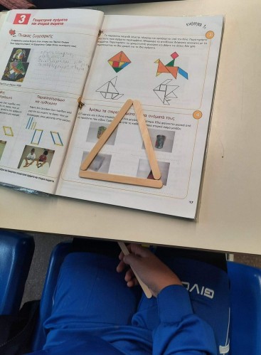 16 Νοεμβρίου 2021Ο μύθος του Τάγκραμ για τον σοφό που μετέφερε ένα πολύτιμο γυαλί για έναν ξεχωριστό βασιλιά, καθώς κι ένα πρωτότυπο βίντεο για τον άνθρωπο Τάγκραμ που βρήκε τη φιλία, πλαισίωσαν το μάθημα για τα «Γεωμετρικά σχήματα και σώματα». Οι μαθητές της Γ’ τάξης, αφού κατανόησαν τη διαφορά του σχήματος από τα στερεά, κατασκεύασαν το δικό τους Τάγκραμ και δημιούργησαν τα σχέδια που πρότεινε το σχολικό εγχειρίδιο αλλά και πολλά περισσότερα…