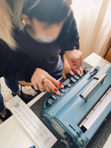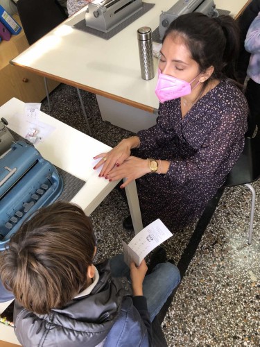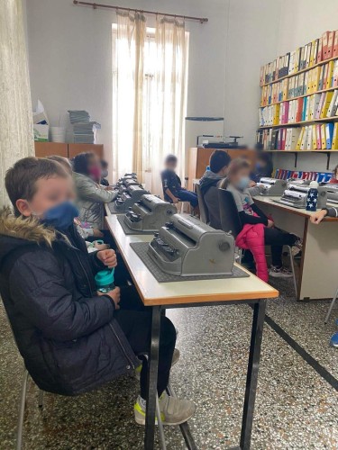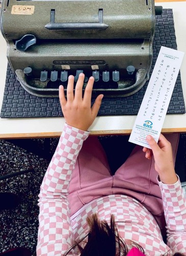 12 Νοεμβρίου 2021Γράφει ο μαθητής της Β’ Τάξης του Δημοτικού μας στη γραφομηχανή με το σύστημα γραφής Μπράιγ. Στο πλαίσιο των Εργαστηρίων Δεξιοτήτων «Βλέπω με τα μάτια της καρδιάς μου» τα δευτεράκια μας ενημερώνονται και συζητούν για άτομα με προβλήματα όρασης, αλλά και για την καθημερινότητα και τον τρόπο επικοινωνίας τους. Έτσι, επισκέφτηκαν τη Σχολή Τυφλών και είχαν την ευκαιρία να δουν με βιωματικό τρόπο έναν άλλο κόσμο. Δακτυλογράφησαν στη γραφομηχανή τα ονόματα τους και διάφορες λεξούλες σε Μπράιγ, γνώρισαν το σκάκι των τυφλών και έπαιξαν μ’ αυτό, ενημερώθηκαν για τους σκύλους οδηγούς, τα ειδικά πλακάκια που, αν υπάρχουν στους δρόμους, βοηθούν στη μετακίνησή τους, καθώς και για τα μπαστούνια τους. Ενημερωνόμαστε, κατανοούμε και ευαισθητοποιούμαστε!