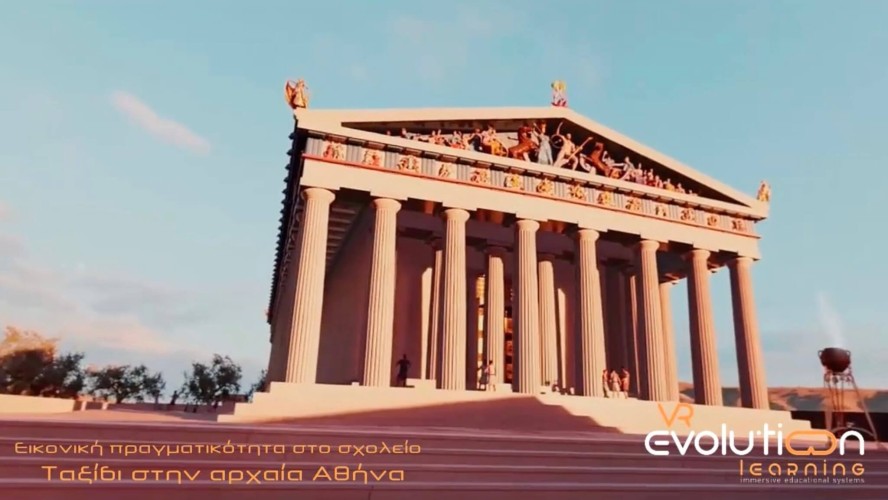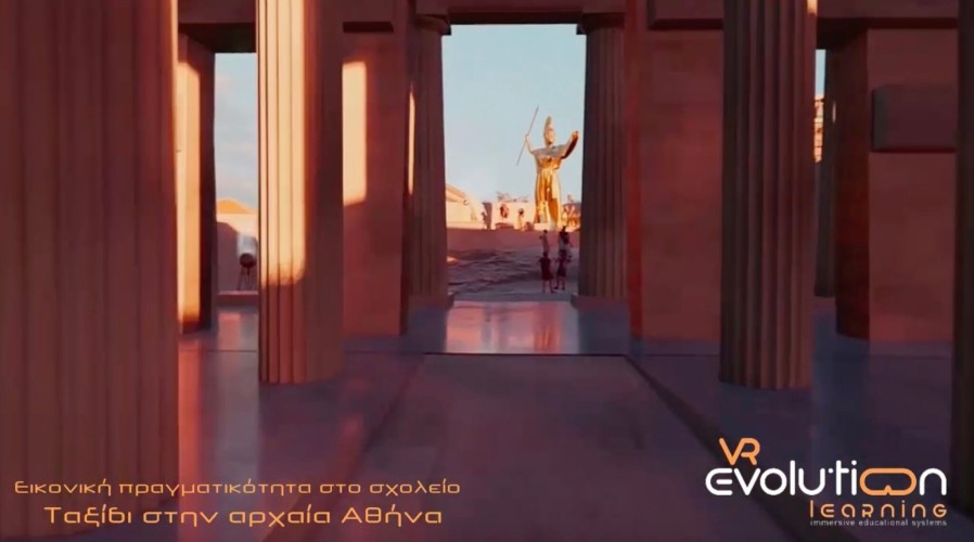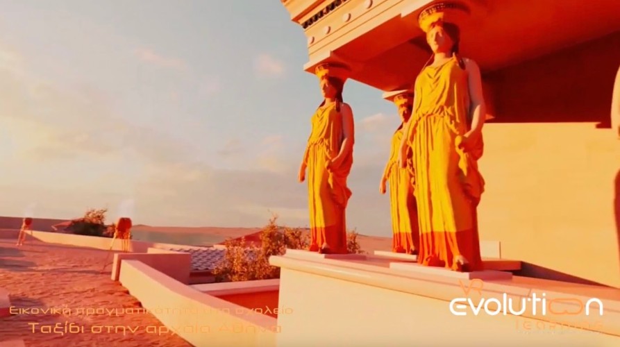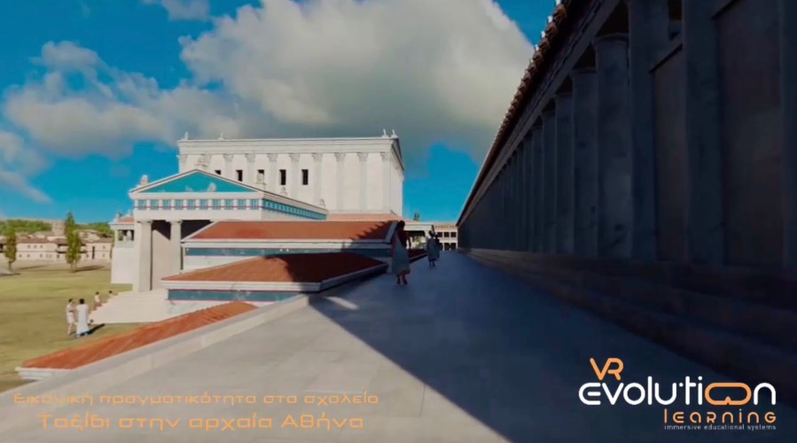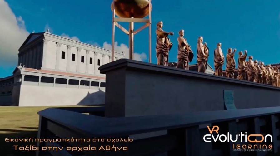 Και αφού φορέσαμε τα ειδικά γυαλιά με τα ακουστικά, βρεθήκαμε στο σημερινό Μοναστηράκι. Γρήγορα όμως το σκηνικό άλλαξε και αρχίσαμε να πετάμε πάνω από την αρχαία Αθήνα. Πόσο διαφορετική ήταν! Ήμασταν ακόμα μαγεμένοι από τη θέα των σπιτιών και των μνημείων, όταν προσγειωθήκαμε στην αρχαία αγορά. Επισκεφθήκαμε το ωδείο, το θέατρο, την Ακρόπολη. Περάσαμε τα Προπύλαια και χαιρετήσαμε το άγαλμα του Περικλή. Σταθήκαμε στην ελιά της Αθηνάς και μάθαμε γι’ αυτήν. Θαυμάσαμε το Ερέχθειο με τις Καρυάτιδες και μπήκαμε μες στον Παρθενώνα για να περιεργαστούμε από κοντά το χρυσελεφάντινο άγαλμα της θεάς Αθηνάς με τη φτερωτή Νίκη. Εντυπωσιαστήκαμε από την ποικιλία των χρωμάτων και την αρχιτεκτονική. Συναντήσαμε και ανθρώπους της εποχής εκείνης αλλιώτικα ντυμένους, μα φαίνονταν τόσο πραγματικοί! Πόσο θα θέλαμε να μείνουμε εκεί για πάντα… Το 2023 όμως μας περίμενε… κι εμείς συνεργαστήκαμε σε ένα διαδραστικό quiz εικονικής πραγματικότητας.