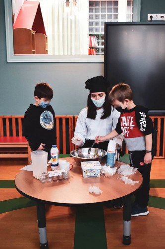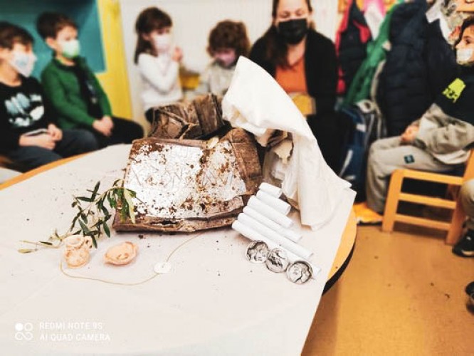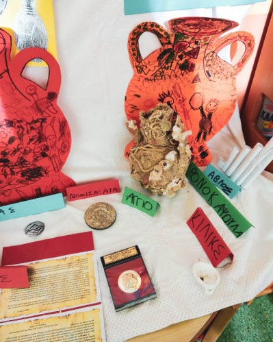 10 Φεβρουαρίου 2021Οι μαθητές του Νηπιαγωγείου μας έκαναν την Τετάρτη 10 Φεβρουαρίου ένα ταξίδι πίσω στον χρόνο. Στον κήπο του Σχολείου μας, βαθιά μέσα στο χώμα, ανακάλυψα μια «χρονοκάψουλα». Επρόκειτο για το κουτί του αρχαίου Έλληνα Λυσίν, που ήταν γεμάτο με διάφορα αντικείμενα μιας άλλης εποχής: έναν αμφορέα, μία κύλικα, έναν χιτώνα, ένα αρχαίο μουσικό όργανο, ένα κλαδί ελιάς κι ένα γραπτό μήνυμα. Τα παιδιά ενθουσιασμένα διάβασαν πολύ προσεκτικά το γράμμα, όμως συνάντησαν πολλές άγνωστες λέξεις. Αμέσως, οργάνωσαν τις δράσεις τους, όπως ακριβώς και οι αρχαιολόγοι όταν ανακαλύπτουν αρχαία ευρήματα. Αξιοποιώντας οπτικοακουστικό υλικό του Μουσείου της Ακρόπολης, «συναντήθηκαν» νοερά με τους συνομηλίκους τους στην Αρχαία Ελλάδα, φόρεσαν αρχαία ενδύματα και μεταμορφώθηκαν σε γλύπτες και αγάλματα. Μαγείρεψαν την αρχαία ελληνική συνταγή «τυρόεις πλακούς», έφτιαξαν αμφορείς με πηλό και έπαιξαν αρχαία παιχνίδια όπως το «αστραγαλίζειν» η «απόρραξις», η «ακινητίνδα» και η «διελκυστίνδα». Ήρθαν σε επαφή με αρχαία μουσικά όργανα, ανακάλυψαν τους ήχους τους και περιηγήθηκαν στο ψηφιακό μουσείο αρχαίων ελληνικών παιχνιδιών. Το συναρπαστικό ταξίδι ολοκληρώθηκε με την αποστολή μιας σύγχρονης χρονοκάψουλας στους ανθρώπους του μέλλοντος, αφού πρώτα προβληματίστηκαν σχετικά με τα αντικείμενα και το περιεχόμενό της