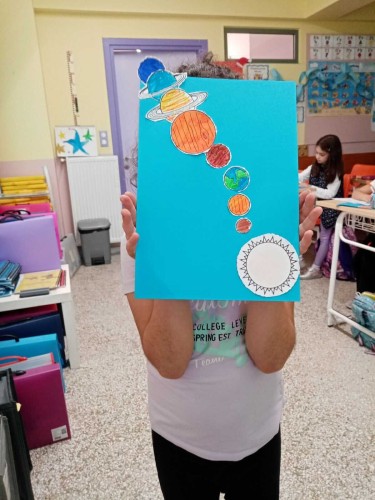 02 Ιουνίου 2023Ένα "ταξίδι" στο ηλιακό σύστημα έκαναν τα παιδιά μας της 'Β τάξης. Στο πλαίσιο του μαθήματος της μελέτης περιβάλλοντος ζωγράφισαν πολύχρωμους πλανήτες και σχημάτισαν την πορεία του ήλιου στον ουρανό. Επίσης, έμαθαν για τους 8 πλανήτες που περιβάλλουν τον φωτεινό ήλιο, και ανακάλυψαν έκθαμβα πως αυτός είναι το πιο λαμπερό σώμα του ουρανού. Ακόμα μέσα από την εικαστική δράση μπόρεσαν να αντιληφθούν τον καθοριστικό ρόλο που έχει στην καθημερινότητα της ζωής μας αυτή η θερμή σφαίρα.