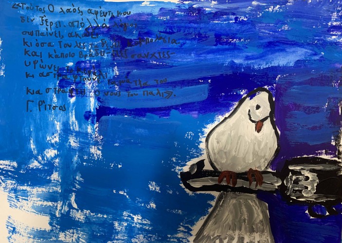 08 Απριλίου 2021Στο πλαίσιο των 200 χρόνων από την Ελληνική Επανάσταση από το 1821, στα διαδικτυακά μαθήματα των Εικαστικών, οι μικροί μας καλλιτέχνες, ζωγράφισαν τους ήρωες του 1821 σε αφίσες για την Ειρήνη με διαφορετικά υλικά και έφτιαξαν περίτεχνα κολάζ, έχοντας πάντα οδηγό την Τέχνη!