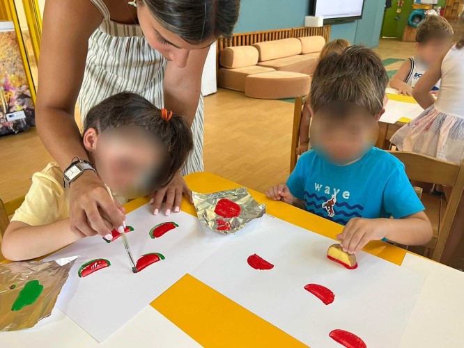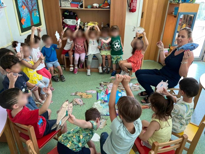 22 Ιουλίου 2023Τα παιδιά μας του Παιδικού Σταθμού "Πρότυπα 2 - 4" έζησαν αξέχαστες στιγμές και απασχολήθηκαν δημιουργικά στο Σχολείο μας την τελευταία εβδομάδα της 11μηνης φοίτησης. Εντυπωσιασμένα ανακάλυψαν πως μόνο με ένα μικρό κομμάτι πατάτας μπορεί να σχεδιαστεί στο χαρτί μια δροσερή φέτα καρπουζιού, τελειοποιώντας τα ίδια το εικαστικό έργο με τα πινέλα τους. Στη συνέχεια, χρίστηκαν προστάτες της θάλασσας και μαζί με τη δασκάλα τους διερεύνησαν τα αντικείμενα που ανασύρονται καθημερινά από αυτή. Ακόμα, με μεγάλο ενθουσιασμό συμμετείχαν στις δροσερές δραστηριότητες που πραγματοποιούνται τις μέρες του καλοκαιριού όπως το κινητικό παιχνίδι "Ρίξε τα τενεκεδάκια με το νεροπίστολο" κλείνοντας τις μέρες τους με εκπαιδευτικά επιτραπέζια παιχνίδια και παραμυθάκια που εξάπτουν τη φαντασία τους με γνώμονα πάντα την μάθηση.
