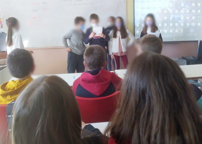21 Φεβρουαρίου 2022Τα παιδιά μας της Δ’ Τάξης μαζί με τη δασκάλα τους είπαν να εξασκήσουν τα αγγλικά και τις γνώσεις τους σ’ αυτά στη θεματική του φαγητού. Έτσι, διοργάνωσαν τον δικό τους διαγωνισμό μαγειρικής, ο οποίος παρουσιάστηκε από τα παιδιά μας στο δικό τους φανταστικό κανάλι. Οι μαθητές μας χωρίστηκαν σε ομάδες και η κάθε μία ετοίμασε το δικό της πιάτο για πρωινό. Τα πιάτα δοκιμάστηκαν και βαθμολογήθηκαν από την κριτική επιτροπή των παιδιών μας. Καθ’ όλη τη διάρκεια του διαγωνισμού η ομιλούμενη γλώσσα ήταν τα αγγλικά. Και αφού αναλύσαμε τα του πρωινού, λέμε την επόμενη φορά να πιάσουμε το μεσημεριανό. Είχε πολύ πλάκα!