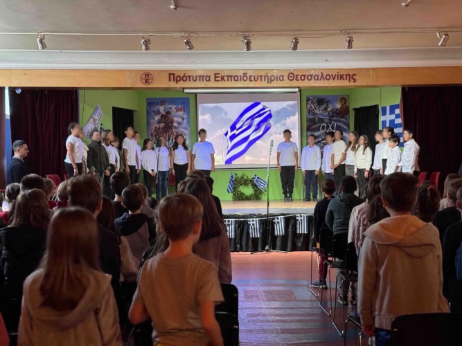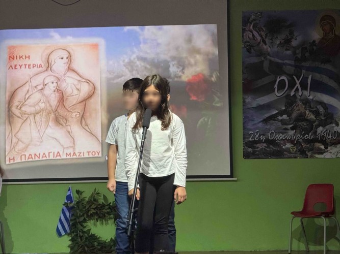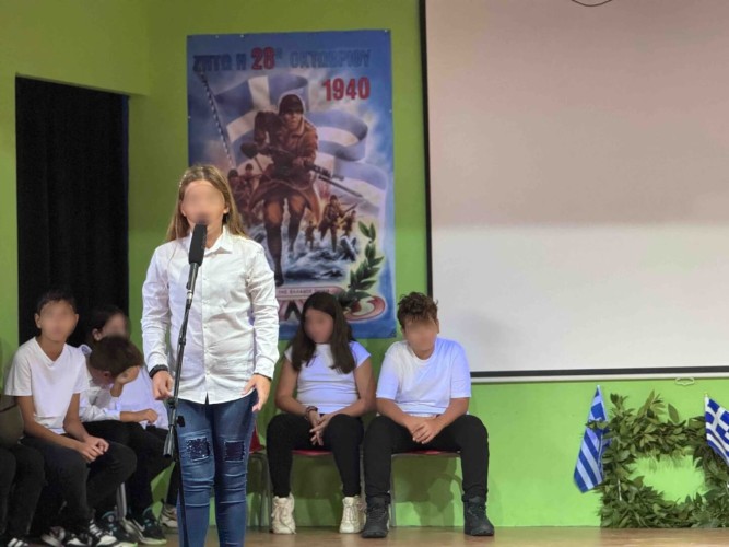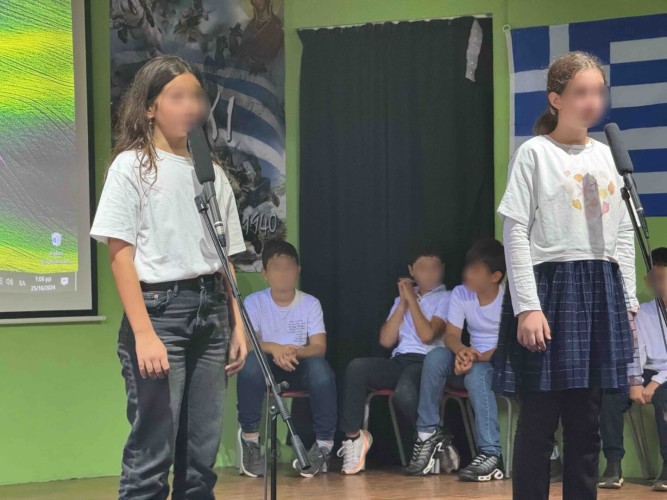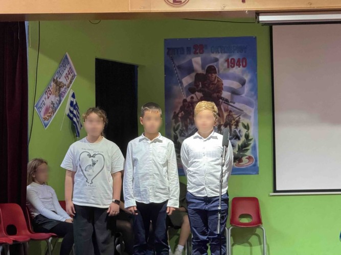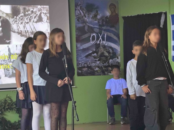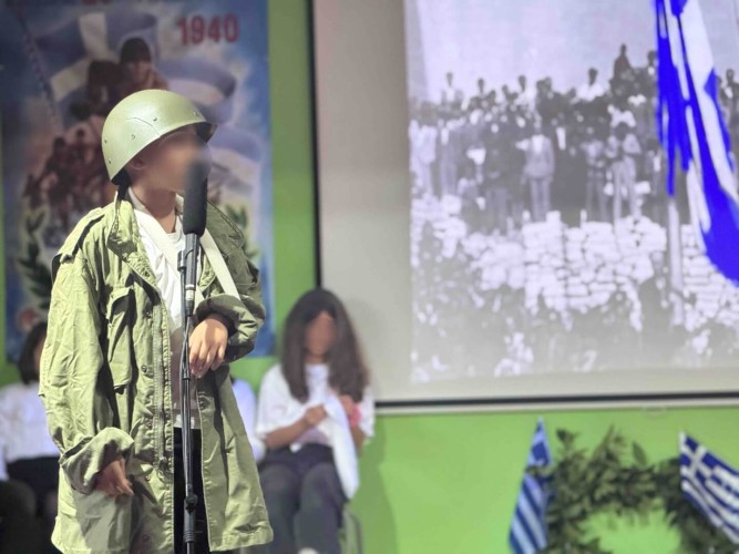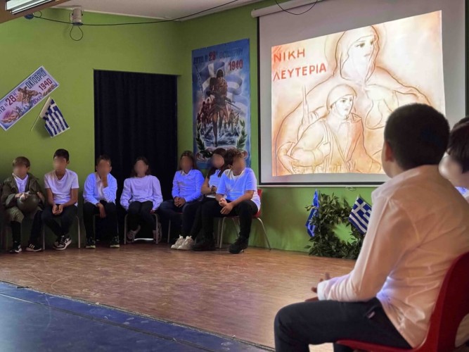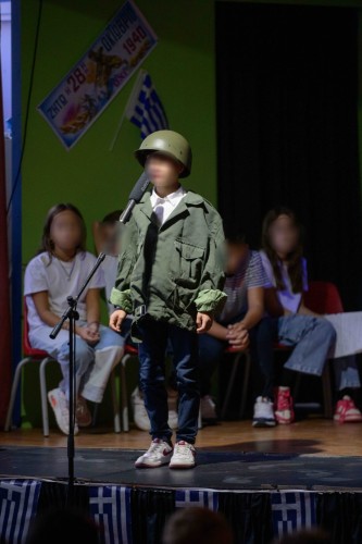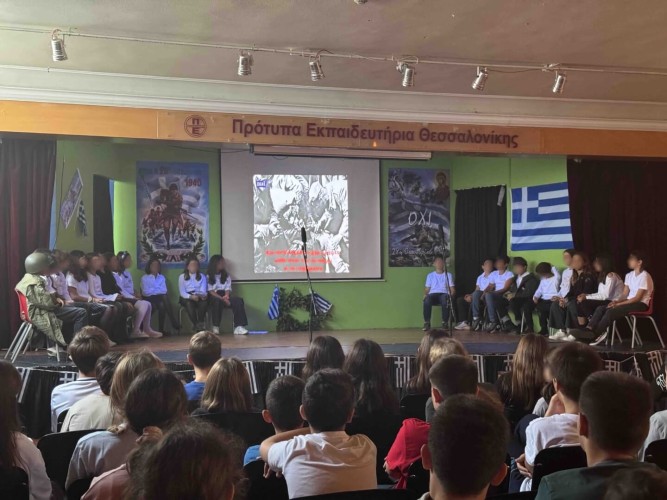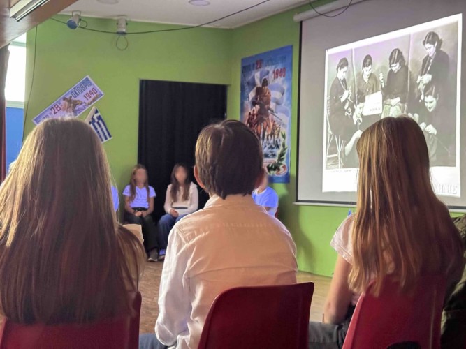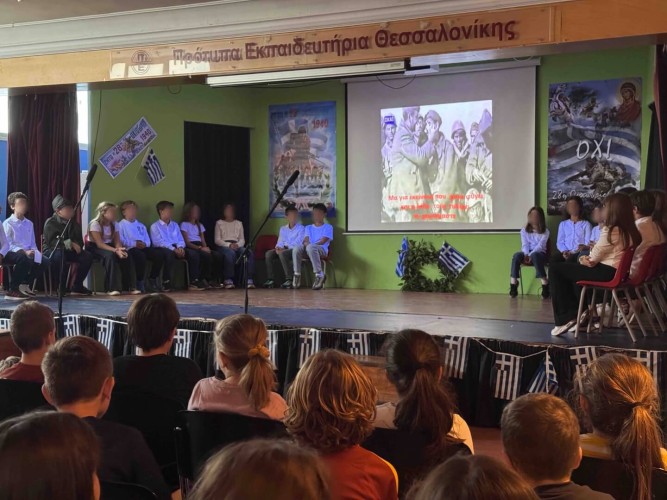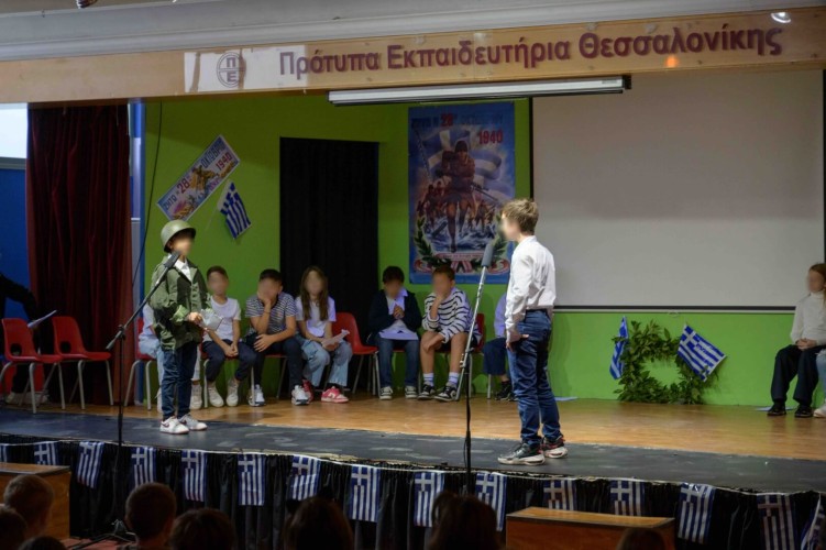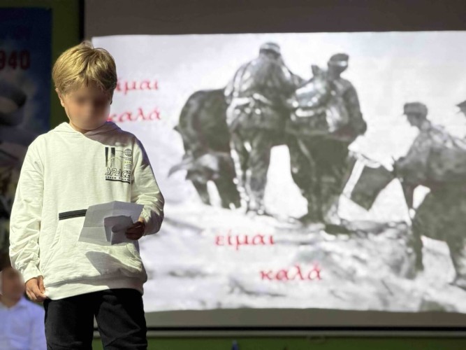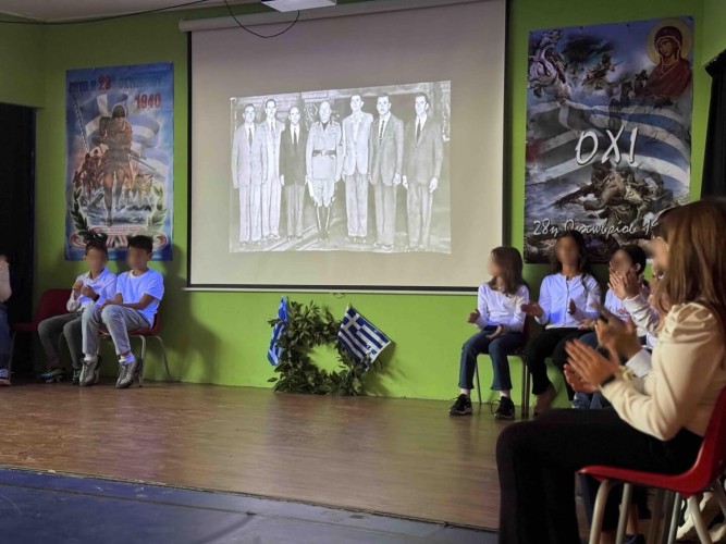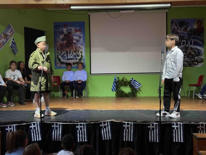 25 Οκτωβρίου 2024«Θέλει αρετή και τόλμη η ελευθερία!» έγραψε ο Α. Κάλβος και οι μαθητές μας της Ε΄ τάξης με σύνθημα το βροντερό «ΟΧΙ» των προγόνων μας ενάντια στους ιταλούς κατακτητές παρουσίασαν στο Σχολείο μας μια συγκινητική παράσταση για την επέτειο της 28ης Οκτωβρίου. Με τραγούδια, βίντεο, ηχητικά ντοκουμέντα εκείνης της εποχής τα παιδιά μας αφηγήθηκαν τα ιστορικά γεγονότα του 1940 και απέτισαν φόρο τιμής στους Έλληνες αγωνιστές που με θάρρος υπερασπίστηκαν την πατρίδα μας. Με τις ερμηνείες των μαθητών οι μάχες των ηρώων που έχασαν τη ζωή τους για την ανεξαρτησία της Ελλάδας «ζωντάνεψαν» υπενθυμίζοντας σε όλους μας ότι η ελευθερία είναι το ύψιστο αγαθό.