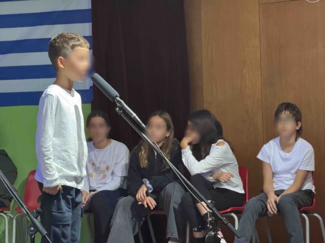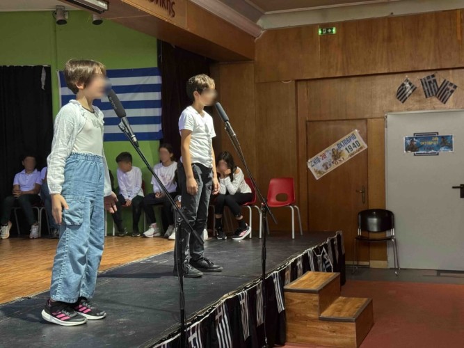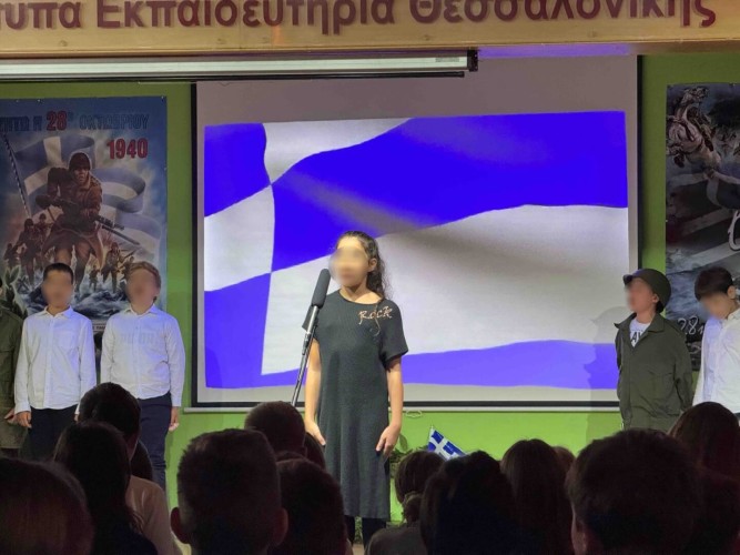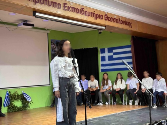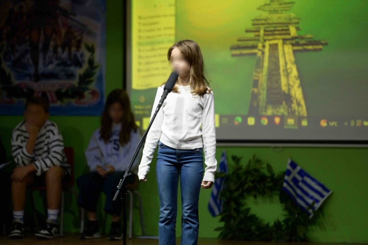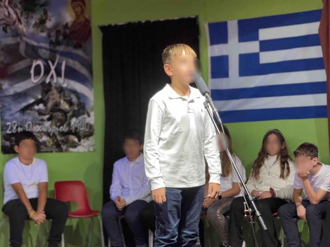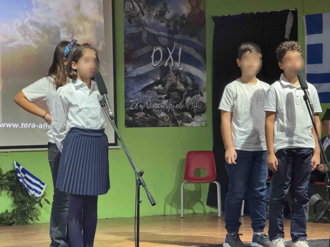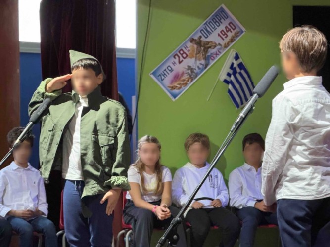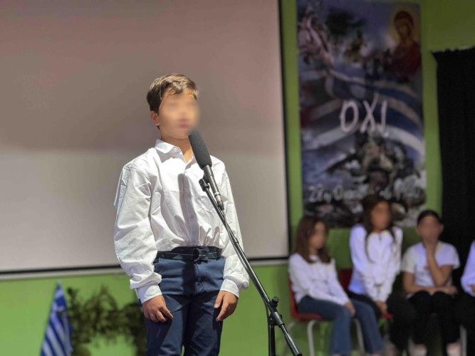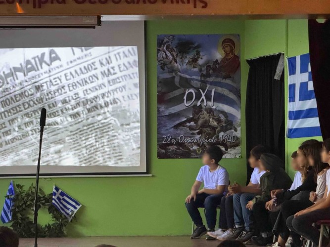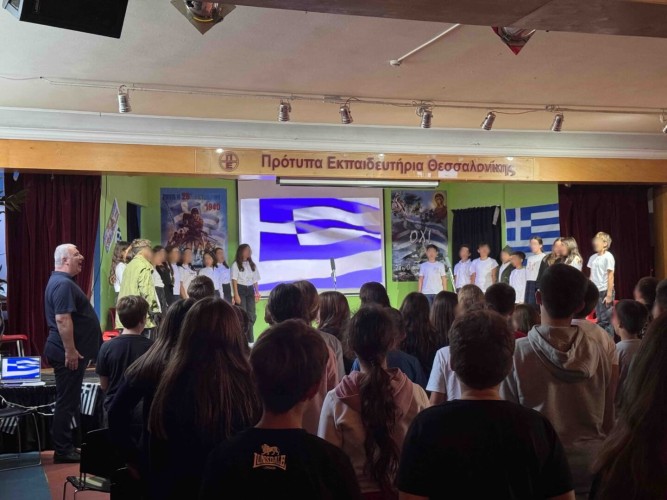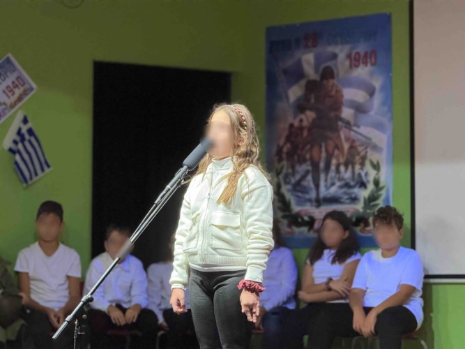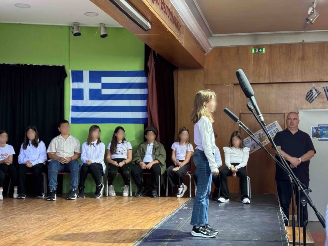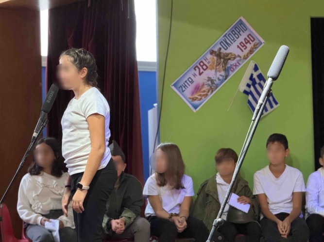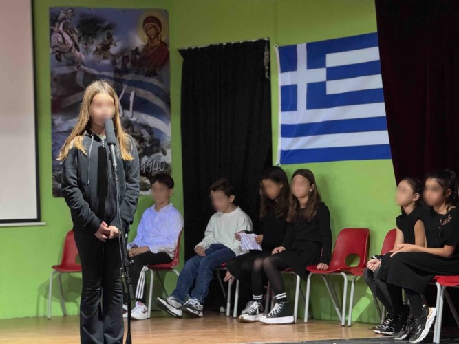 25 Οκτωβρίου 2024«Θέλει αρετή και τόλμη η ελευθερία!» έγραψε ο Α. Κάλβος και οι μαθητές μας της Ε΄ τάξης με σύνθημα το βροντερό «ΟΧΙ» των προγόνων μας ενάντια στους ιταλούς κατακτητές παρουσίασαν στο Σχολείο μας μια συγκινητική παράσταση για την επέτειο της 28ης Οκτωβρίου. Με τραγούδια, βίντεο, ηχητικά ντοκουμέντα εκείνης της εποχής τα παιδιά μας αφηγήθηκαν τα ιστορικά γεγονότα του 1940 και απέτισαν φόρο τιμής στους Έλληνες αγωνιστές που με θάρρος υπερασπίστηκαν την πατρίδα μας. Με τις ερμηνείες των μαθητών οι μάχες των ηρώων που έχασαν τη ζωή τους για την ανεξαρτησία της Ελλάδας «ζωντάνεψαν» υπενθυμίζοντας σε όλους μας ότι η ελευθερία είναι το ύψιστο αγαθό.