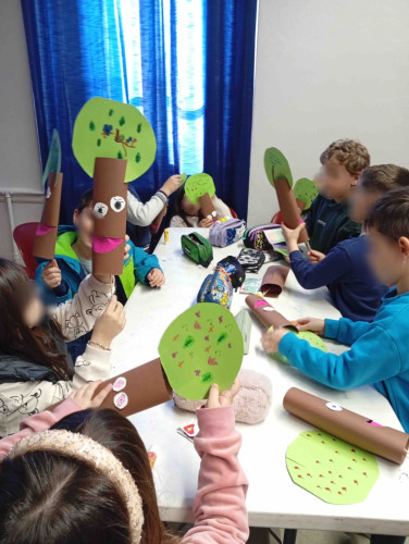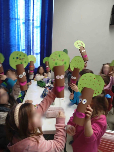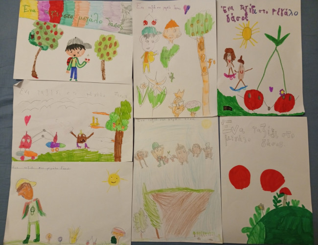 27 Φεβρουαρίου 2026Με μια ιδεοθύελλα, ξεκίνησε η αναζήτησή των μαθητών μας της Α΄ τάξης για το δάσος. Στο πλαίσιο της 3ης θεματικής ενότητας των Εργαστηρίων Δεξιοτήτων «Φροντίζω το Περιβάλλον» με τίτλο «Μια ιστορία για το δάσος που αγαπάμε» συζήτησαν τις λέξεις που τους έρχονται στο μυαλό όταν ακούν τη λέξη «δάσος». Αφού, μίλησαν για τα ζώα, τα πουλιά, τα φυτά και κατανόησαν τι μας προσφέρει. Στη συνέχεια, διάβασαν το παραμύθι «Ταξίδι σε ένα μεγάλο δάσος» των Maša Ogrizek, Slavica Danić που διηγείται τις περιπέτειες τεσσάρων καρπών που ζουν σε μια παιδική χαρά. Με αφορμή λοιπόν τις περιπέτειες των ηρώων, που θέλησαν να γνωρίσουν το δάσος, τα παιδιά προσπάθησαν να εικονογραφήσουν το δικό τους εξώφυλλο για την όμορφη αυτή ιστορία. Μετά τη δημιουργία, ακολούθησε η επίσκεψη στη ΧΑΝΘ όπου παρακολουθήσαν το κουκλοθέατρο με τίτλο «Ο ξυλοκόπος και το δάσος» και έπειτα κατασκεύασαν μοναδικές κούκλες με ανακυκλώσιμα υλικά.