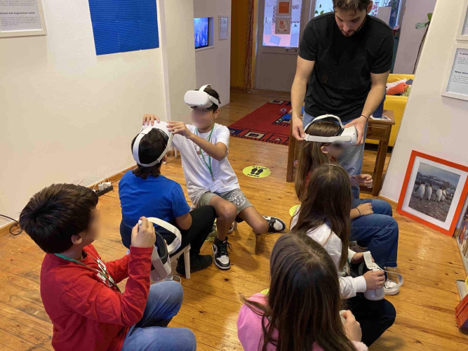 08 Νοεμβρίου 2024Μία ενδιαφέρουσα εκπαιδευτική επίσκεψη με πολλά χρήσιμα μαθήματα για το μέλλον πραγματοποίησαν τα παιδιά μας της Ε΄ τάξης στο Ινστιτούτο ψηφιακής μάθησης και επικοινωνίας «NOUS» τη Δευτέρα 4, την Τρίτη 5 και την Παρασκευή 8 Νοεμβρίου. Οι μαθητές μας εξερεύνησαν φανταστικά και πραγματικά περιβάλλοντα με τη βοήθεια της εικονικής και της επαυξημένης πραγματικότητας και συζήτησαν εποικοδομητικά με τους υπεύθυνους του προγράμματος για τους κινδύνους του διαδικτύου. Μετά από τις πληροφορίες που αποκόμισαν, ηχογράφησαν τις απόψεις τους, δημιούργησαν στον υπολογιστή τα δικά τους κινούμενα σχέδια και κατάφεραν να φτιάξουν ένα ξεχωριστό βίντεο που αναδεικνύει τη σημαντικότητα του διαδικτύου αλλά και επισημαίνει τους κινδύνους που ελλοχεύουν από την αλόγιστη χρήση του.