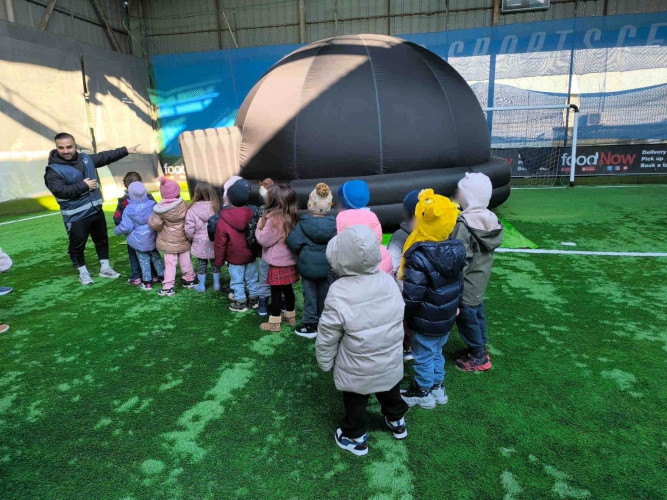 23 Ιανουαρίου 2026Τη Δευτέρα 19 και την Παρασκευή 23 Ιανουαρίου στο πλαίσιο της θεματικής ενότητας «Ο κόσμος πέρα από τη Γη», τα παιδιά συμμετείχαν στο πρόγραμμα «Μικροί αστροναύτες». Μέσα σε ένα κινητό φουσκωτό πλανητάριο, έζησαν μια μοναδική και μαγική εμπειρία, παρακολουθώντας σε τρισδιάστατη προβολή το ηλιακό μας σύστημα. Έμαθαν χρήσιμες πληροφορίες για τους πλανήτες, τη θέση της Γης, την ιστορία του διαστήματος, καθώς και για τη ζωή και την καθημερινότητα των αστροναυτών. Επιπλέον, συμμετείχαν σε μια διαστημική διαδρομή με διαδοχικά εμπόδια, που έκανε την εμπειρία ακόμη πιο διασκεδαστική