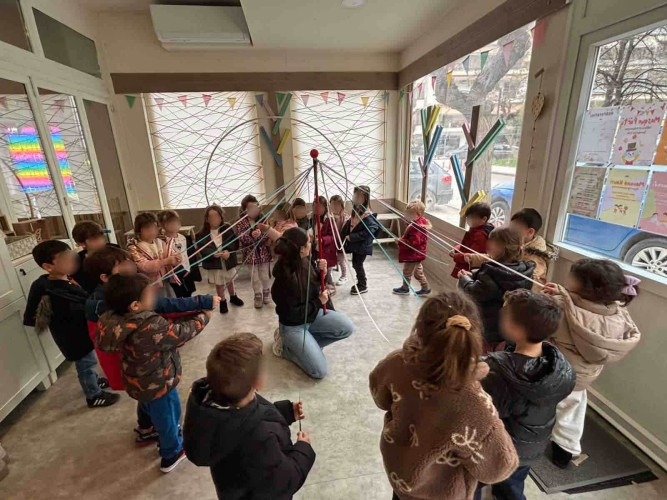 10 Φεβρουαρίου 2026Την Παρασκευή 10 Φεβρουαρίου τα προνηπιάκια μας επισκέφθηκαν τον πολυχώρο “Play Together” και παρακολούθησαν τη δραματοποιημένη παράσταση του παραμυθιού «Το γαϊτανάκι» από την ομάδα “The little foxes”. Η Tula, μια μικρή αραχνούλα είναι η πρωταγωνίστρια της ιστορίας, η οποία ζει σε ένα δέντρο στο κέντρο της πόλης και ξεχωρίζει για την ικανότητά της να υφαίνει ιστούς. Όταν ένα τσίρκο ετοιμάζει μια αποκριάτικη γιορτή και διαπιστώνει ότι λείπει το γαϊτανάκι, ήρθε η ώρα που εκείνη αναλαμβάνει δράση. Μέσα από το χαρούμενο αποκριάτικο κλίμα, τα παιδιά ήρθαν σε επαφή με αξίες όπως η προσφορά, η συνεργασία και η χαρά της συμμετοχής. Ακόμα, πήραν μέρος στο θεατρικό με πολύ διασκεδαστικό τρόπο. Ο καθένας ζωγράφισε τη δική του αποκριάτικη μάσκα με χρώματα της επιλογής του και φεύγοντας την πήραν μαζί τους ως αναμνηστικό.