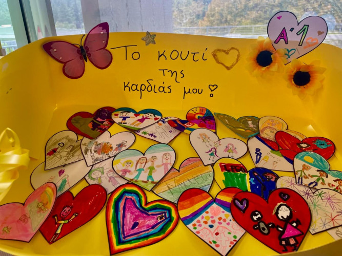 21 Οκτωβρίου 2025Οι μαθητές της Α΄ τάξης γέμισαν το «κουτί της καρδιάς» με όμορφες αναμνήσεις και ευτυχισμένα πρόσωπα. Στη δραστηριότητα αυτή τα παιδιά μας έκοψαν καρδιές από λευκό χαρτόνι και ζωγράφισαν πάνω τους ό,τι τα κάνει να νιώθουν πραγματικά χαρούμενα: η οικογένεια, οι φίλοι, τα αγαπημένα αντικείμενα. Στη συνέχεια, όσοι το επιθυμούσαν, παρουσίασαν τη ζωγραφιά τους στους συμμαθητές τους και εξήγησαν με λίγα λόγια γιατί έκαναν αυτή την επιλογή. Στο τέλος όλες οι καρδιές τοποθετήθηκαν στο «κουτί της καρδιάς μας», όπως ονομάστηκε, που αποτελεί πλέον σύμβολο χαράς και θετικών συναισθημάτων.