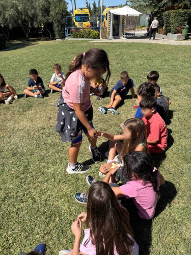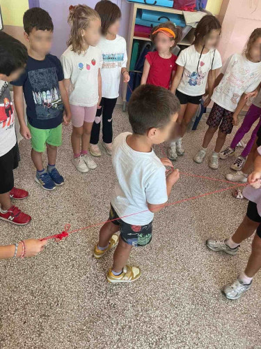 29 Σεπτεμβρίου 2025Το κουβάρι της φιλίας άρχισε να ξετυλίγεται και η μαθητές μας της Β΄ τάξης πήραν μέρος με ενθουσιασμό στη βιωματική δραστηριότητα. Καθισμένα σε κύκλο ένα ένα τα παιδιά κρατούν το νήμα και περνούν το κουβάρι με το μαλλί στον επόμενο συμμαθητή τους λέγοντας κάθε φορά κάτι θετικό για εκείνον. Σιγά σιγά δημιουργείται ένας «ιστός», ο οποίος αντικατοπτρίζει τις σχέσεις που έχτισε η ομάδα. Με αυτόν τον τρόπο οι µαθητές µαθαίνουν να παρατηρούν και να εκφράζουν θετικά χαρακτηριστικά για τους συµµαθητές και τις συμμαθήτριές τους, ενώ παράλληλα ενισχύεται έµπρακτα το αίσθηµα του «ανήκειν».
